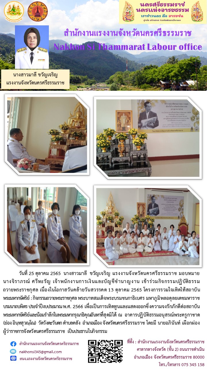 สรจ.นครศรีธรรมราชเข้าร่วมกิจกรรมปฏิบัติธรรม ถวายพระราชกุศล เนื่องในโอกาสวันคล้ายวันสวรรคต 13 ตุลาคม 2565