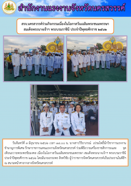 สรจ.นครสวรรค์ร่วมกิจกรรมเนื่องในโอกาสเฉลิมพระชนมพรรษาสมเด็จพระนางเจ้าฯ พระบรมราชินี ประจำปีพุทธศักราช 2562 พิธีถวายเครื่องราชสักการะและจุดเทียนถวายพระพรชัยมงคล