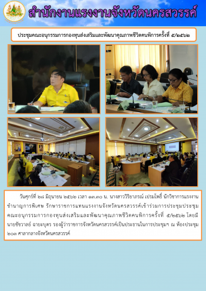 สรจ.นครสวรรค์เข้าร่วมประชุมคณะอนุกรรมการกองทุนส่งเสริมและพัฒนาคุณภาพชีวิตคนพิการครั้งที่ 5/2562
