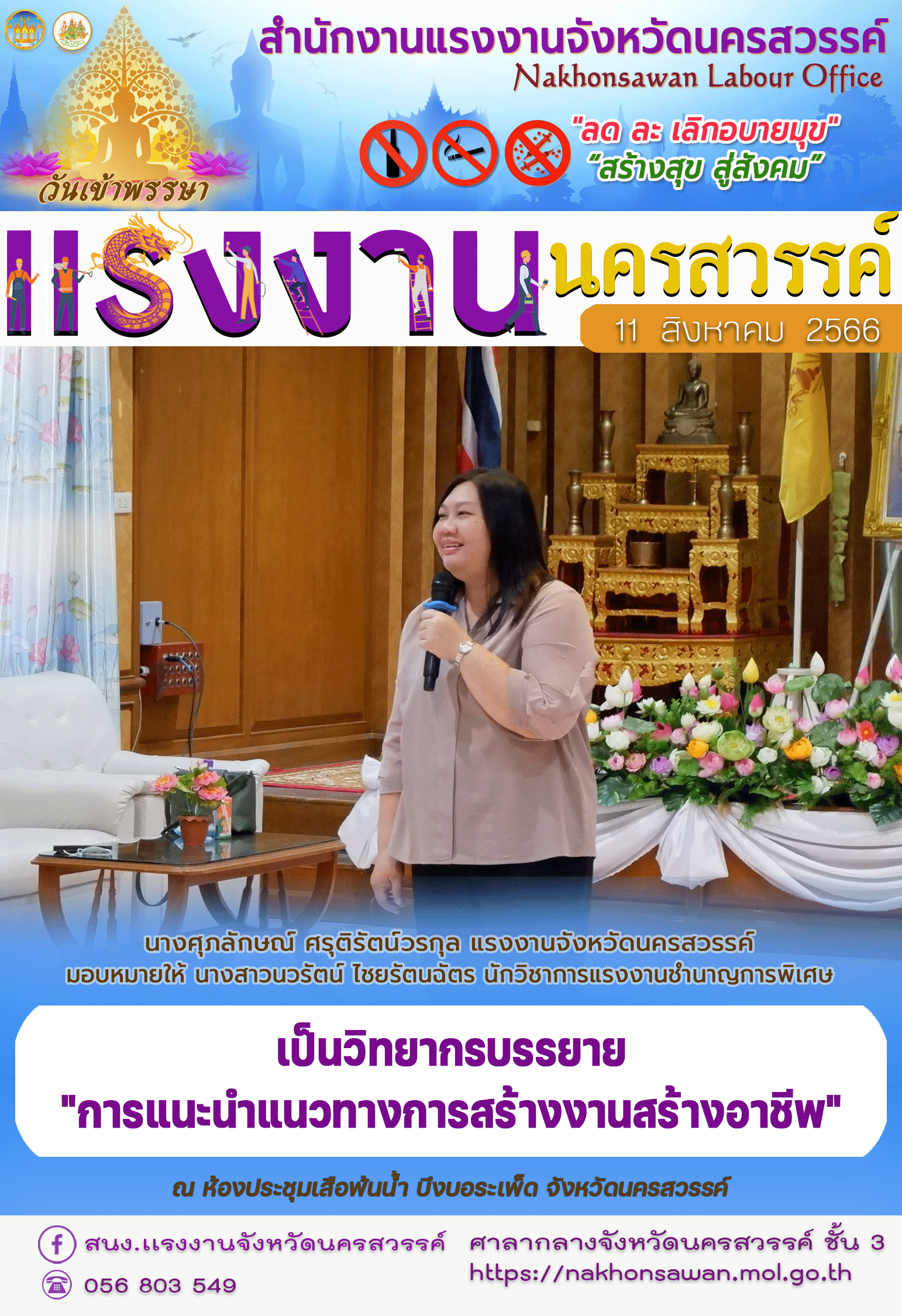 สรจ.สมุทรสงคราม ให้บริการประชาชน แนะนำ ข้อมูลด้านแรงงาน พร้อมประสานส่งหน่วยงานในสังกัด ช่วยเหลือในภารกิจที่เกี่ยวข้อง