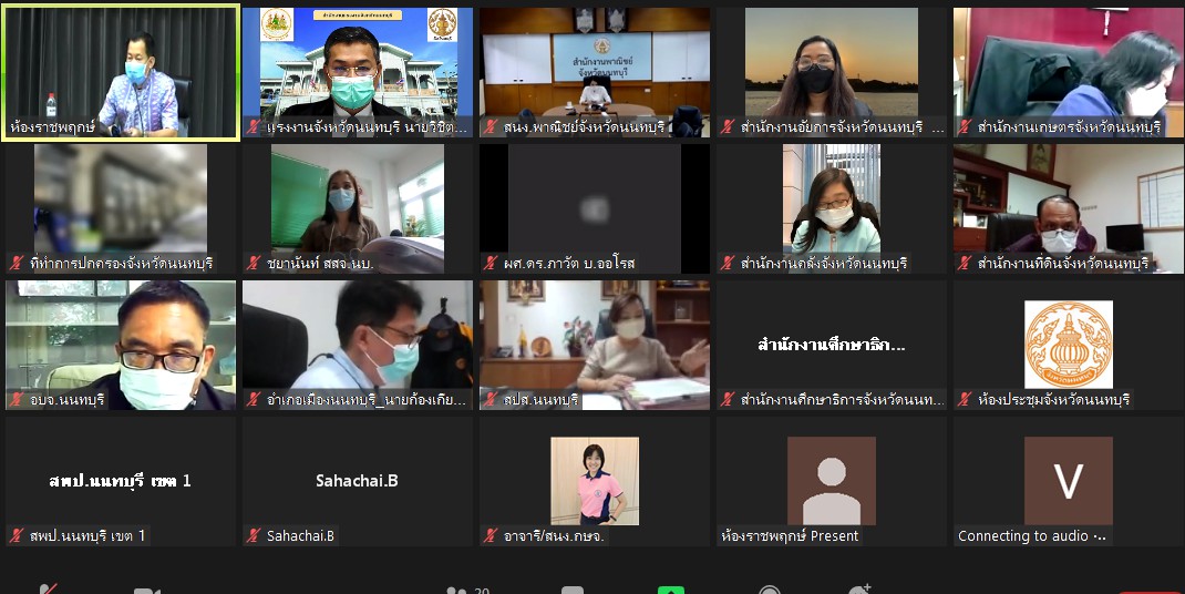 วันที่ 22 มีนาคม 2565 เวลา 09.30 น. นายวิชิตร สุวรรณมาก แรงงานจังหวัดนนทบุรี ร่วมประชุมคณะกรรมการจัดวางผังแม่บทศูนย์ราชการจังหวัดนนทบุรี ครั้งที่ 2/2565 พร้อมด้วยหน่วยงานราชการที่เกี่ยวข้อง ผ่านระบบ Zoom Meeting โดยมีนาย อภิชัย อร่ามศรี รองผู้ว่าราชการจังหวัดนนทบุรี เป็นประธานการประชุม