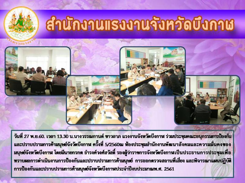 สรจ.บึงกาฬ ร่วมประชุมคณะอนุกรรมการป้องกันและปราบปรามการค้ามนุษย์จังหวัดบึงกาฬ ครั้งที่ 5/2560