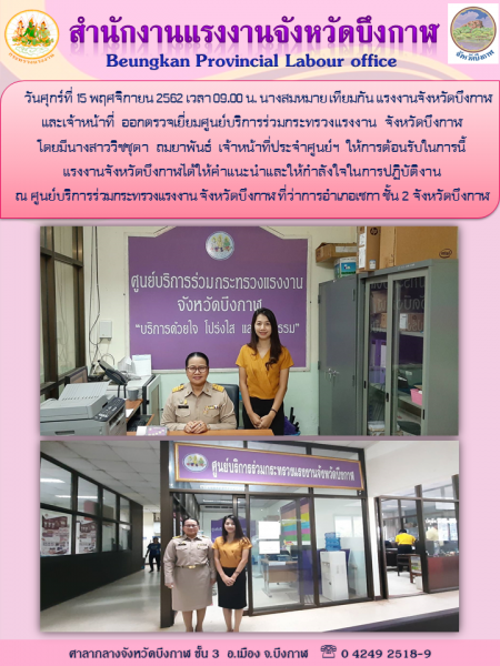 สรจ.บึงกาฬ ออกตรวจเยี่ยมศูนย์บริการร่วมกระทรวงแรงงาน จังหวัดบึงกาฬ