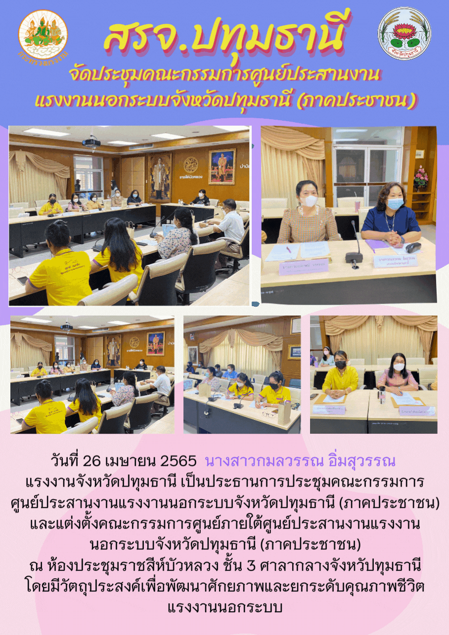 สรจ.ปทุมธานี จัดประชุมคณะกรรมการศูนย์ประสานงานแรงงานนอกระบบจังหวัดปทุมธานี (ภาคประชาชน)