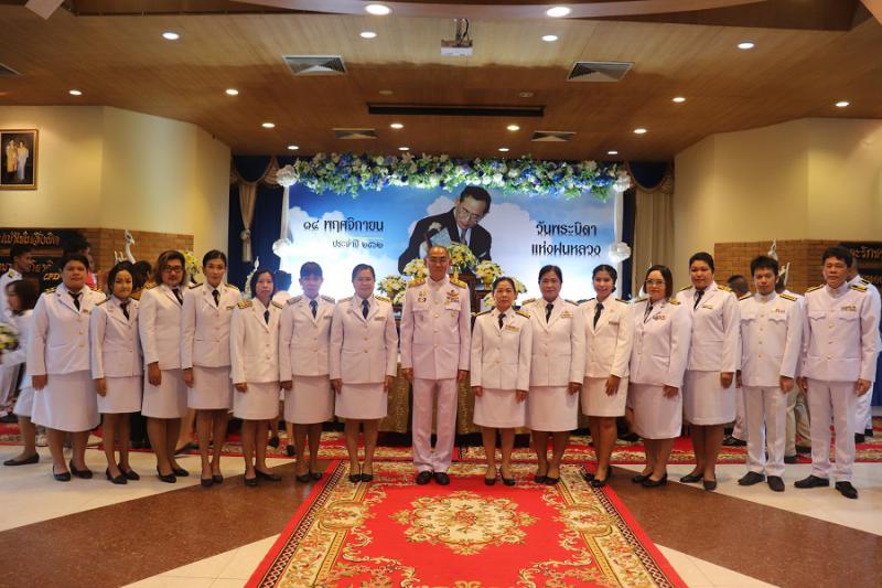 วันที่ 14 พฤศจิกายน 2562 หัวหน้าส่วนราชการสังกัดกระทรวงแรงงานจังหวัดประจวบคีรีขันธ์ พร้อมด้วยข้าราชการและเจ้าหน้าที่ในสังกัด เข้าร่วมพิธีวางพานพุ่มดอกไม้สดถวายแด่พระบาทสมเด็จพระบรมชนกาธิเบศร มหาภูมิพลอดุยลเดชมหาราช บรมนาถบพิตร เนื่องในวันพระบิดาแห่งฝนหลวง ประจำปี 2562 เพื่อแสดงความจงรักภักดี และน้อมรำลึกในพระมหากรุณาธิคุณที่ทรงก่อให้เกิดเทคโนโลยีฝนหลวง บรรเทาความทุกข์ยากแก่พสกนิกรให้รอดพ้นความเดือดร้อนจากภัย โดยมีนายพัลลภ สิงหเสนี ผู้ว่าราชการจังหวัดประจวบคีรีขันธ์ เป็นประธานในพิธี ณ ห้องดุสิตา กองบิน 5 อ่าวมะนาว อำเภอเมือง จังหวัดประจวบคีรีขันธ์