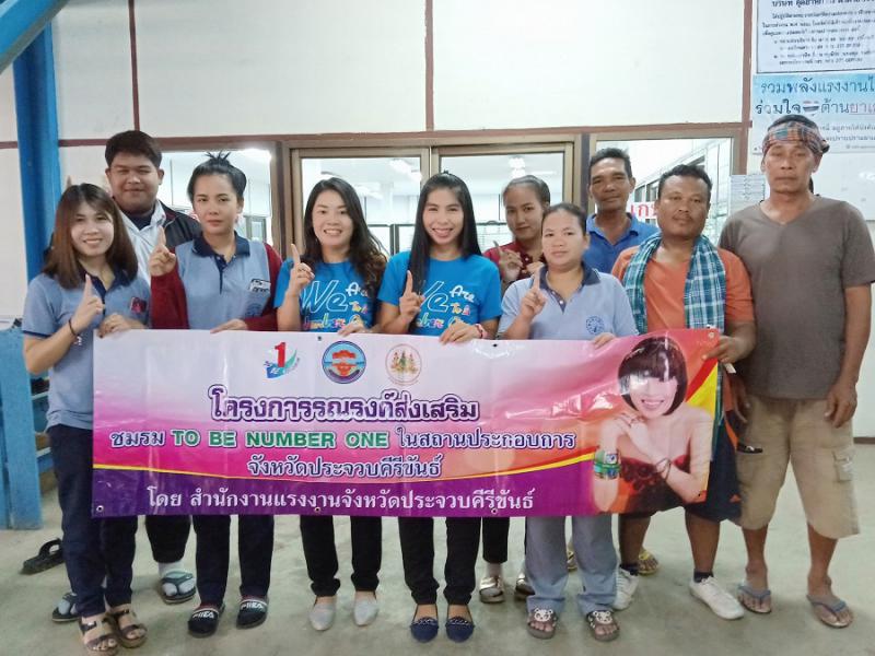 วันที่ 11 ธันวาคม 2561 นางสาวอังคณา คงศักดิ์ นักวิชาการแรงงานชำนาญการ พร้อมด้วย นางสาวพรรณราย ปานเล็ก นักวิชาการแรงงาน เข้าตรวจเยี่ยมการดำเนินงานของชมรม TO BE NUMBER ONE ในสถานประกอบการ จำนวน 3 แห่ง ในพื้นที่อำเภอปราณบุรี ได้แก่ (1) บริษัท อุตสาหกรรมน้ำตาลปราณบุรี จำกัด (2) บริษัท สยามแม็คโคร จำกัด(มหาชน) สาขาปราณบุรี (3) บริษัท ปราณบุรี บีช รีสอร์ท จำกัด (โรงแรมเอวาซอน) โดยรับฟังสรุปผลการดำเนินงานของชมรมฯ และเจ้าหน้าที่ได้ชี้แจงสรุปแนวทางการดำเนินงาน เพื่อส่งเสริมให้สถานประกอบการเข้าร่วมประกวดชมรม TO BE NUMBER ONE ในระดับจังหวัด เพื่อเข้าสู่ระดับภาคและระดับประเทศต่อไป ทั้งนี้ สถานประกอบการส่วนใหญ่มีผลการดำเนินงานอย่างต่อเนื่อง และให้ความสนใจเข้าร่วมประกวดในระดับจังหวัด