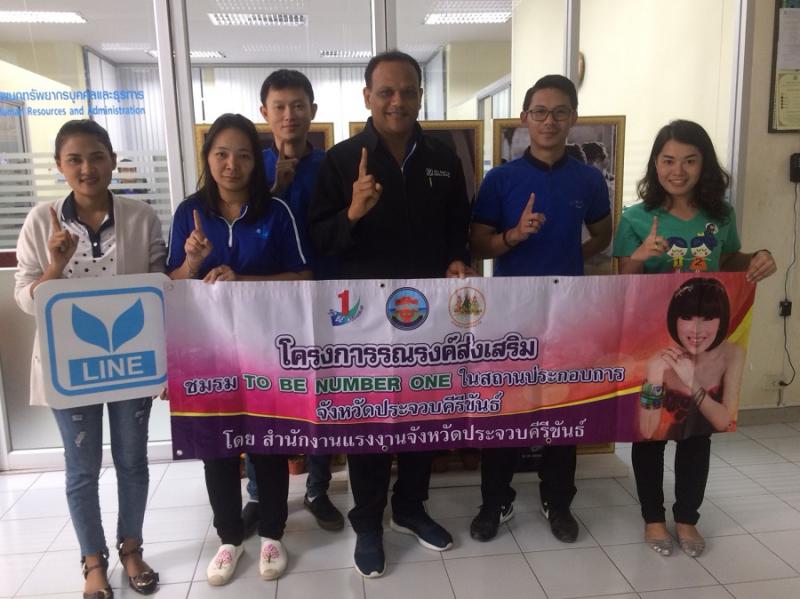 วันที่ 26 เมษายน 2561 นางสาวกรจิรัฏฐ์ พงจันทร์ศธร แรงงานจังหวัดประจวบคีรีขันธ์ มอบหมายให้ นางสาวอังคณา คงศักดิ์ นักวิชาการแรงงานชำนาญการ พร้อมเจ้าหน้าที่ เข้าตรวจเยี่ยมการดำเนินงานของชมรม TO BE NUMBER ONE ในสถานประกอบการ จำนวน 2 แห่ง ในพื้นที่อำเภอบางสะพาน ได้แก่ (1)บริษัท เหล็กแผ่นรีดเย็นไทย จำกัด (2) บริษัท ไลน์ ทรานสปอร์ต จำกัด โดยรับฟังสรุปผลการดำเนินงานของชมรมฯ ทั้งนี้ เจ้าหน้าที่ ได้ชี้แจงสรุปแนวทางการดำเนินงาน เพื่อส่งเสริมให้สถานประกอบการเข้าร่วมประกวดชมรม TO BE NUMBER ONE ในระดับจังหวัด เพื่อเข้าสู่ระดับภาค และระดับประเทศต่อไป