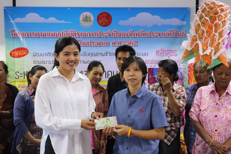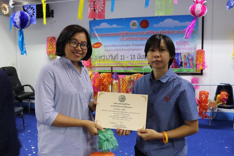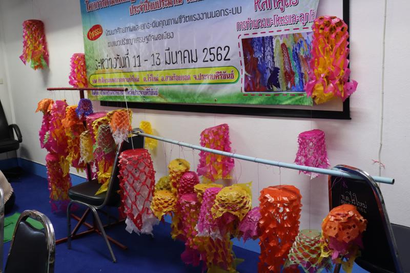 วันที่ 13 มีนาคม 2562 นางสาวมยุรี อินต๊ะมา นักวิชาการแรงงานชำนาญการ รักษาราชการแทนแรงงานจังหวัดประจวบคีรีขันธ์ ปิดฝึกอบรมพัฒนาทักษะฝีมือในการประกอบอาชีพแก่กลุ่มแรงงานนอกระบบ ตามโครงการพัฒนาศักยภาพและยกระดับคุณภาพชีวิตแรงงานนอกระบบ ตามแนวปรัชญาเศรษฐกิจพอเพียง จังหวัดประจวบคีรีขันธ์ ประจำปีงบประมาณ 2562 กิจกรรมพัฒนาศักยภาพแรงงานนอกระบบ หลักสูตร “การทำพวงมะโหตรและลูกโลก” ระหว่างวันที่ 11 – 13 มีนาคม 2562 ณ สำนักงานเทศบาลตำบลไร่ใหม่ ต.ไร่ใหม่ อ.สามร้อยยอด จังหวัดประจวบคีรีขันธ์ ซึ่งได้รับการสนับสนุนงบประมาณค่าใช้จ่าย ตามแผนปฏิบัติราชการประจำปีของจังหวัดประจวบคีรีขันธ์ ประจำปีงบประมาณ พ.ศ.2562