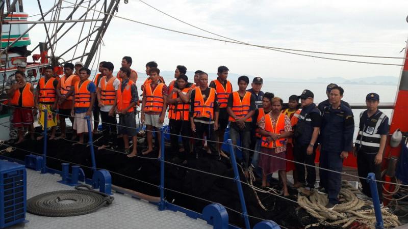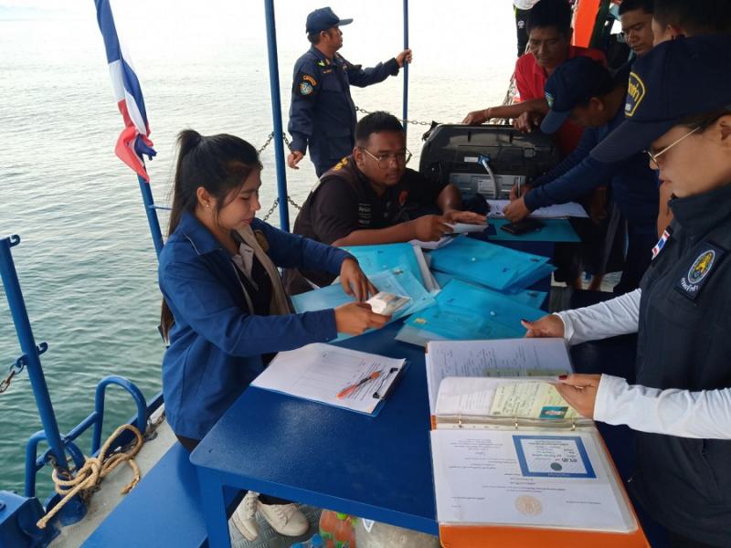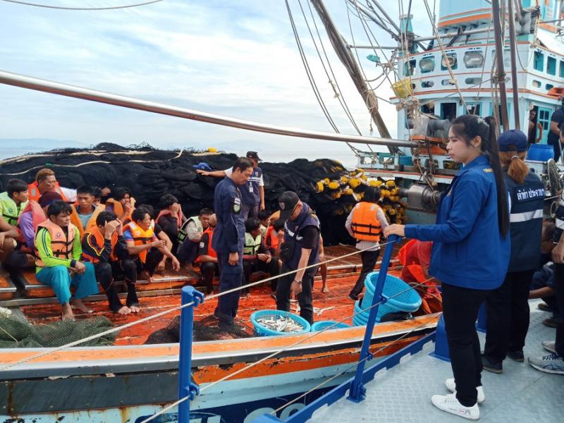 วันที่ 6 มิถุนายน 2562 เวลา 07.00 น. นางสาวมยุรี อินต๊ะมา นักวิชาการแรงงานชำนาญการ รก.แรงงานจังหวัดประจวบคีรีขันธ์ มอบหมายให้ นางสาวพรรณราย ปานเล็ก นักวิชาการแรงงาน ร่วมตรวจสภาพการจ้าง การทำงานและการค้ามนุษย์ด้านแรงงานในกิจการประมงทะเลแบบบูรณาการ ร่วมกับหน่วยป้องกันและปราบปรามประมงทะเลบางสะพานน้อย และหน่วยงานที่เกี่ยวข้อง ได้แก่ สำนักงานสวัสดิการและคุ้มครองแรงงานจังหวัด สำนักงานจัดหางานจังหวัด สำนักงานเจ้าท่าส่วนภูมิภาค ศูนย์ควบคุมการแจ้งเข้า-ออกเรือประมงบางสะพาน สำนักงานประมงจังหวัด และสำนักงานพัฒนาสังคมและความมั่นคงของมนุษย์จังหวัด โดยตรวจเรือประมงในน่านน้ำอำเภอบางสะพาน จำนวน 9 ลำ ได้แก่ (1)น.โชคอุมาพร111 (2)ก.วิษณุชัยนาวี999 (3)ส.สมบูรณ์ทรัพย์5 (4)ส.สมบูรณ์ทรัพย์17 (5)ส.รุ่งกาญจนา9 (6)ส.รุ่งทวี5 (7)ส.สมบูรณ์ทรัพย์9 (8)ก.โชคฐิติยา11 (9)ป.โชคทวีทรัพย์1แรงงานรวมทั้งหมด 294 คน แรงงานไทย 31 คน เมียนมา 195 คน กัมพูชา 68 คน จากการตรวจไม่พบการใช้แรงงานเด็ก แรงงานบังคับ หรือการกระทำผิดทางด้านกฎหมายแรงงานแต่อย่างใด