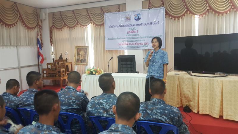วันที่ 13 กันยายน 2561 เวลา 14.00 น. นางสาวกรจิรัฏฐ์ พงจันทร์ศธร แรงงานจังหวัดประจวบคีรีขันธ์ มอบหมายให้นางสาวมยุรี อินต๊ะมา นักวิชาการแรงงานชำนาญการ ร่วมบรรยายสรุปภารกิจการให้บริการของหน่วยงานสังกัดกระทรวงแรงงาน แก่ผู้รับการฝึกอบรมหลักสูตรการฝึกอาชีพเสริมให้กับทหารก่อนปลดประจำการของกองบิน 5 จำนวน 3 สาขา ได้แก่ สาขาช่างซ่อมรถจักรยานยนต์ สาขาช่างเชื่อมไฟฟ้าด้วยมือ และสาขาผลิตภัณฑ์ปูนปั้นไม้เทียมเพื่องานประดับ จำนวน 30 ชั่วโมง ระหว่างวันที่ 10 – 13 กันยายน 2561 โดยมีผู้เข้ารับการฝึกจำนวน 76 คน ณ สำนักงานพัฒนาฝีมือแรงงานประจวบคีรีขันธ์ เพื่อให้ผู้เข้ารับการฝึกอบรมเตรียมความพร้อมและเพิ่มทักษะทางวิชาชีพ พร้อมเข้าสู่กระบวนการจ้างงานตามความต้องการของตลาดแรงงานต่อไป