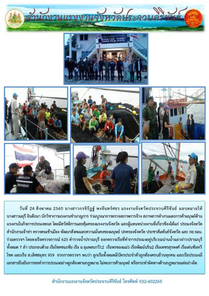 สรจ.ประจวบคีรีขันธ์ ร่วมบูรณาการตรวจสภาพการจ้าง สภาพการทำงานและการค้ามนุษย์ด้านแรงงานในกิจการประมงทะเล