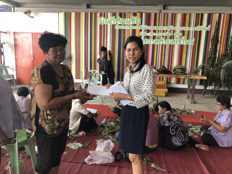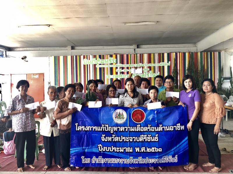วันที่ 21 มีนาคม 2561 เวลา 14.00 น. นางสาวกรจิรัฏฐ์ พงจันทร์ศธร แรงงานจังหวัดประจวบคีรีขันธ์ มอบหมายให้นางณารีรัตน์ จันทรมณี เจ้าพนักงานการเงินและบัญชีชำนาญงาน ร่วมปิดโครงการแก้ไขปัญหาความเดือดร้อนด้านอาชีพ จังหวัดประจวบคีรีขันธ์ ปีงบประมาณ พ.ศ.2561 กิจกรรมพัฒนาทักษะฝีมือ หลักสูตรงานหัตถกรรมและการจักรสานวัสดุจากธรรมชาติสำหรับผู้สูงอายุ ระหว่างวันที่ 12 – 20 มีนาคม 2561 และได้จ่ายค่าตอบแทนสำหรับผู้เข้ารับการฝึกอบรม โดยมีผู้เข้าร่วมโครงการทั้งสิ้น 16 คน ณ เทศบาลตำบลไร่ใหม่ ตำบลไร่ใหม่ อำเภอสามร้อยยอด จังหวัดประจวบคีรีขันธ์