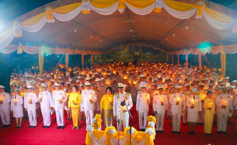 วันที่ 13 ตุลาคม 2562 หัวหน้าส่วนราชการสังกัดกระทรวงแรงงานจังหวัดประจวบคีรีขันธ์ พร้อมด้วย ข้าราชการและเจ้าหน้าที่ในสังกัด เข้าร่วมกิจกรรมบำเพ็ญกุศลและกิจกรรมน้อมรำลึกเนื่องในวันคล้ายวันสวรรคตพระบาทสมเด็จพระบรมชนกาธิเบศร มหาภูมิพลอดุลยเดชมหาราช บรมนาถบพิตร โดยจังหวัดประจวบคีรีขันธ์ ได้จัดกิจกรรมฯ ประกอบด้วย ภาคเช้า พิธีทำบุญตักบาตรถวายเป็นพระราชกุศล และวางพวงมาลาเบื้องหน้าพระบรมฉายาลักษณ์ พระบาทสมเด็จพระบรมชนกาธิเบศร มหาภูมิพลอดุลยเดชมหาราช บรมนาถบพิตร และในภาคค่ำพิธีจุดเทียนถวายพระพรชัยมงคล โดยมีนายพัลลภ สิงหเสนี ผู้ว่าราชการจังหวัดประจวบคีรีขันธ์ เป็นประธานในพิธี พร้อมด้วยรองผู้ว่าราชการจังหวัด ปลัดจังหวัด หัวหน้าส่วนราชการประจำจังหวัด ข้าราชการ และคณะกรรมการเหล่ากาชาดจังหวัด เข้าร่วมพิธี ณ ลานพิธีอเนกประสงค์ ศาลากลางจังหวัดประจวบคีรีขันธ์