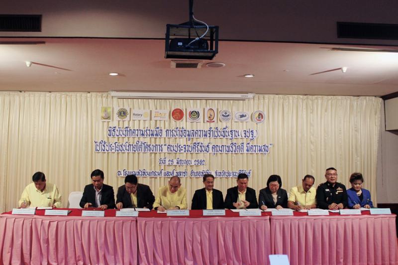 เมื่อวันที่ 25 มิถุนายน 2562 นางสาวมยุรี อินต๊ะมา นักวิชาการแรงงานชำนาญการ รักษาราชการแทน แรงงานจังหวัดประจวบคีรีขันธ์ ร่วมพิธีลงนามความร่วมมือ (MOU) การนำข้อมูลความจำเป็นพื้นฐาน (จปฐ.) ไปใช้ประโยชน์ภายใต้โครงการ คนประจวบคีรีขันธ์ คุณภาพชีวิตดี มีความสุข ซึ่งข้อมูล จปฐ.เป็นข้อมูลที่จัดเก็บเพื่อทราบคุณภาพชีวิตของคนไทย เพื่อให้การนำข้อมูลไปใช้ประโยชน์ได้อย่างรวดเร็ว เป็นรูปธรรม และสามารถยกระดับคุณภาพชีวิตครัวเรือนให้ดีขึ้น ลดความเหลื่อมล้ำทางสังคม โดยมีการลงนามความร่วมมือกับหน่วยงาน องค์กรที่เกี่ยวข้องด้วยในครั้งนี้เพื่อบูรณาการร่วมกันในการแก้ไขปัญหาให้กับพี่น้องประชาชนจังหวัด โดยในพิธีดังกล่าวมี นายนิสิต จันทร์สมวงศ์ อธิบดีกรมการพัฒนาชุมชน พร้อมด้วย ดร.พัลลภ สิงหเสนี ผู้ว่าราชการจังหวัดประจวบคีรีขันธ์ ร่วมแถลงข่าวผลความสำเร็จการจัดเก็บข้อมูลความจำเป็นพื้นฐาน หรือ จปฐ.ด้วยอิเลคทรอนิกส์(Tablet) ณ ห้องหัวหินบอลรูม 1 โรงแรมหัวหินแกรนด์ โฮเทล แอนด์ พลาซ่า อำเภอหัวหิน จังหวัดประจวบคีรีขันธ์