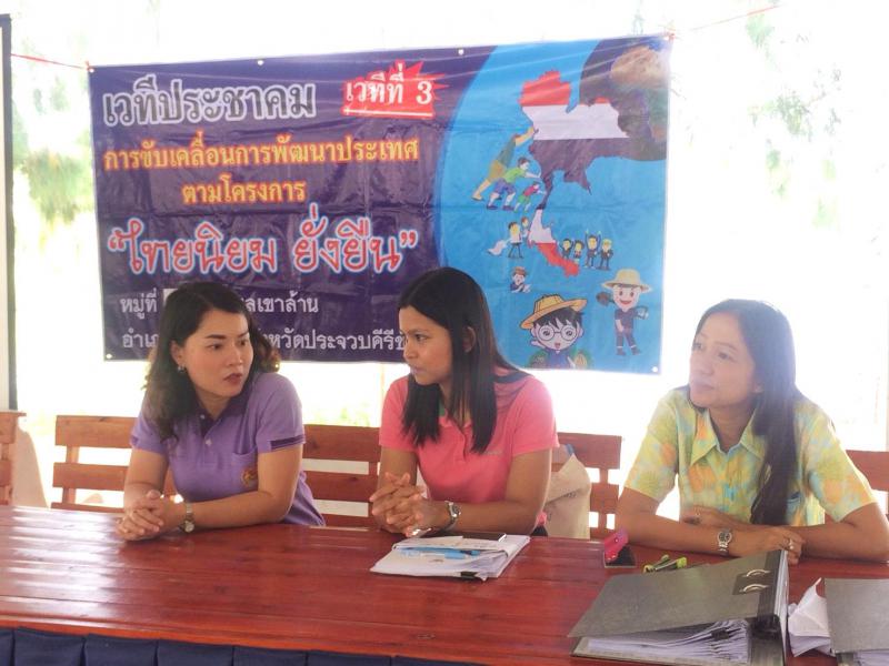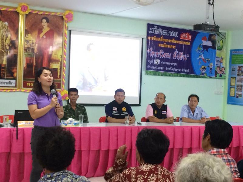 วันที่ 27 เมษายน 2561 นางสาวกรจิรัฎฐ์ พงจันทร์ศธร แรงงานจังหวัดประจวบคีรีขันธ์ คณะกรรมการขับเคลื่อนการพัฒนาประเทศตามโครงการไทยนิยม ยั่งยืน ระดับจังหวัด และคณะอนุกรรมการพัฒนาคุณภาพชีวิตผู้มีบัตรสวัสดิการแห่งรัฐประจำจังหวัด รับผิดชอบอำเภอทับสะแก มอบหมายให้ นางสาวอังคณา คงศักดิ์ นักวิชาการแรงงานชำนาญการ ร่วมสังเกตการณ์การดำเนินงานขับเคลื่อนการพัฒนาประเทศตามโครงการไทยนิยม ยั่งยืน ระดับตำบล (เวทีที่ 3) และชี้แจงการดำเนินงานโครงการเพิ่มศักยภาพผู้มีรายได้น้อยที่ลงทะเบียนสวัสดิการแห่งรัฐ "เพื่อสร้างงาน สร้างอาชีพ เพิ่มรายได้ และความมั่นคงในชีวิต" ภายใต้มาตรการพัฒนาคุณภาพชีวิตผู้มีบัตรสวัสดิการแห่งรัฐ จำนวน 3 แห่ง ได้แก่ 1) หมู่ 10 บ้านทุ่งตาแก้ว ต.นาหูกวาง 2) หมู่ 1 บ้านห้วยแห้ง ต.เขาล้าน และ 3) หมู่ 5 บ้านหินเทิน ต.แสงอรุณ มีประชาชนเข้าร่วม หมู่บ้านละประมาณ 50 คน ซึ่งเวทีประชาคมครั้งนี้ เป็นการให้ความรู้แก่ประชาชนเรืองวิถีพอเพียงและการน้อมนำปรัชญาเศรษฐกิจพอเพียงมาปรับใช้ในชีวิตประจำวัน ผลการจัดเวทีประชาคมเป็นไปด้วยความเรียบร้อยตรงตามวัตถุประสงค์ที่กำหนดไว้