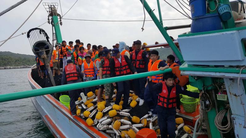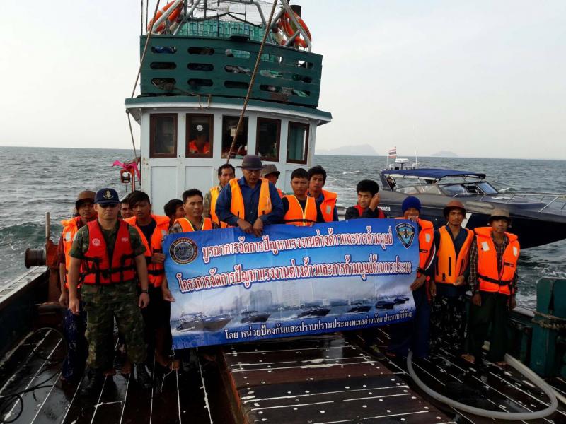 วันที่ 11 มกราคม 2561 เวลา 07.00 น. นางสาวกรจิรัฏฐ์ พงจันทร์ศธร แรงงานจังหวัดประจวบคีรีขันธ์มอบหมายให้นางสาวอังคณา คงศักดิ์ นักวิชาการแรงงานชำนาญการ ออกตรวจเรือประมง เพื่อเป็นการบูรณาการจัดการแรงงานปัญหาต่างด้าวและการค้ามนุษย์ด้านการประมง เพื่อบูรณาการร่วมป้องกันแก้ไขปัญหาแรงงานในเรือประมง และป้องกันปราบปรามการค้ามนุษย์ ร่วมกับหน่วยป้องกันและปราบปรามประมงทะเล โดยมีสวัสดิการและคุ้มครองแรงงานจังหวัด และผู้แทนหน่วยงานที่เกี่ยวข้อง ได้แก่ ประมงจังหวัด สำนักงานเจ้าท่า และฝ่ายทหาร โดยออกตรวจเรือบริเวณท่าเทียบเรือคลองวาฬ จำนวน 5 ลำ ประกอบด้วย เรือพิเชษฐ์นาวา 8 เรือพิเชษฐ์นาวา 9 เรือกิตติมา 55 และเรือก.มงคลสมุทร 11 จากการตรวจไม่พบการค้ามนุษย์ หรือกระทำผิดทางด้านกฎหมายด้านแรงงานแต่อย่างใด และพบว่าลูกเรือทั้งหมดมีบัตรประจำตัวถูกต้องครบถ้วนทุกคน และเรือประมงมีเอกสารยืนยันการขอทำการประมงอย่างถูกต้องตามกฎหมาย