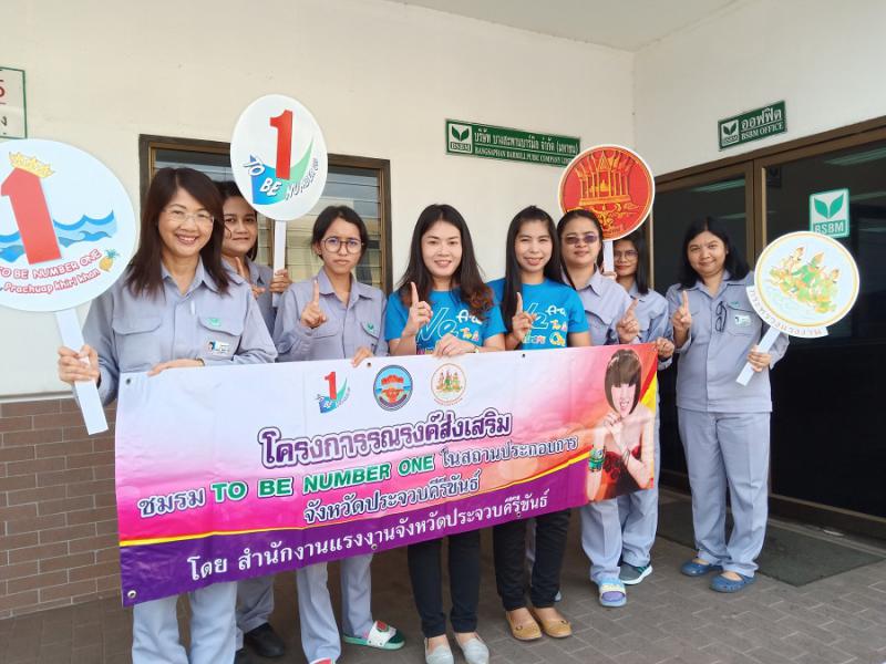 วันที่ 30 มกราคม 2562 นางสาวอังคณา คงศักดิ์ นักวิชาการแรงงานชำนาญการ พร้อมด้วย นางสาวพรรณราย ปานเล็ก นักวิชาการแรงงาน เข้ารณรงค์ส่งเสริมการจัดตั้งชมรม TO BE NUMBER ONE ในสถานประกอบการ ประจำปี พ.ศ. 2562 ในพื้นที่อำเภอเมือง อำเภอบางสะพาน และอำเภอทับสะแก จังหวัดประจวบคีรีขันธ์ จำนวน 3 แห่ง ได้แก่ (1)บริษัท แอทที บูทีค ซีไซด์ จำกัด (โรงแรมแอทที บูทีค) (2)บริษัท บางสะพานบาร์มิล จำกัด (3)บริษัท อลีนตา จำกัด (โรงแรมณิชาวิลล์ รีสอร์ท แอนด์ สปา) ทั้งนี้ เจ้าหน้าที่ได้บรรยายสรุปแนวทางการดำเนินงานตามโครงการฯ ซึ่งผลการรณรงค์ฯ สถานประกอบการส่วนใหญ่ได้ให้ความสนใจเข้าร่วมในการจัดตั้งชมรมฯ