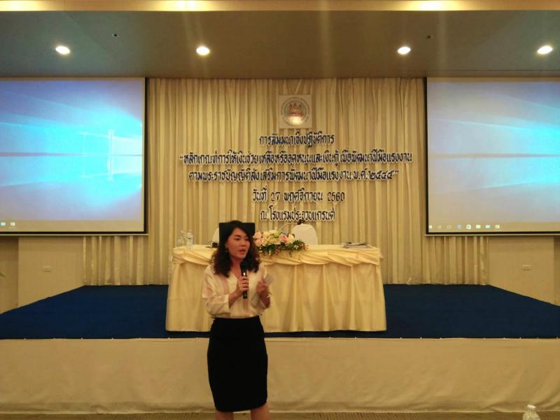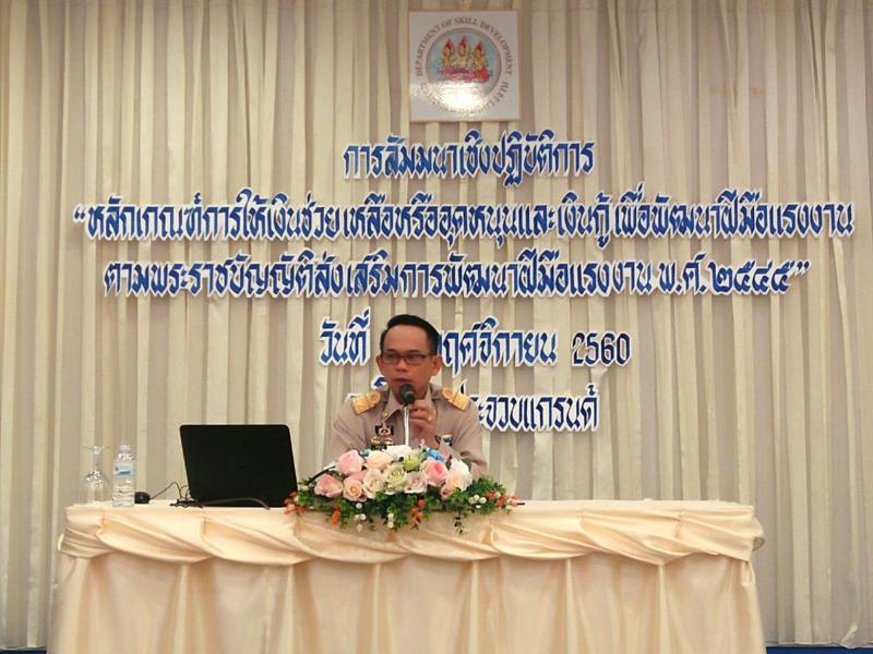 วันที่ 27 พฤศจิกายน 2560 นายโชตินรินทร์ เกิดสม รองผู้ว่าราชการจังหวัดประจวบคีรีขันธ์ เป็นประธานการสัมมนา “หลักเกณฑ์การให้เงินช่วยเหลือหรืออุดหนุนและเงินกู้เพื่อพัฒนาฝีมือแรงงานตามพระราชบัญญัติส่งเสริมการพัฒนาฝีมือแรงงาน พ.ศ. 2545” โดยมีนางสาวกอบกุล มะลิวัลย์ ผู้อำนวยการสำนักงานพัฒนาฝีมือแรงงานประจวบคีรีขันธ์ กล่าวรายงานฯ