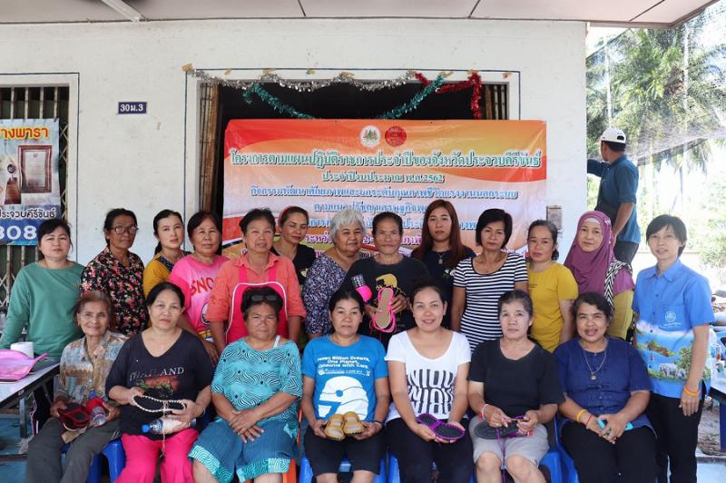 วันที่ 22 กุมภาพันธ์ 2562 เวลา 14.00 นางสาวมยุรี อินต๊ะมา นักวิชาการแรงงานชำนาญการ รักษาราชการแทน แรงงานจังหวัดประจวบคีรีขันธ์ เปิดโครงการยกระดับคุณภาพการศึกษา ศิลปวัฒนธรรม รายได้ สุขภาพ และการสาธารณสุข ตลอดจนการสร้างความเข้มแข็งของครอบครัว ชุมชน และภาคเครือข่าย รวมทั้งภาคประชาสังคม เพื่อพัฒนาศักยภาพและยกระดับคุณภาพชีวิตแรงงานนอกระบบ ตามแนวปรัชญาเศรษฐกิจพอเพียง กิจกรรมพัฒนาศักยภาพแรงงานนอกระบบ หลักสูตร “การทำรองเท้าถักเส้นใยประดิษฐ์จากยางพารา” ระหว่างวันที่ 22 – 26 กุมภาพันธ์ 2562 ณ กลุ่มสมบัติไหมไทย ต.ช้างแรก อ.บางสะพานน้อย จังหวัดประจวบคีรีขันธ์