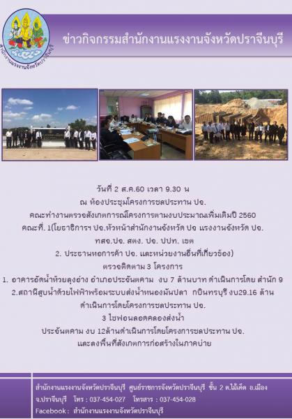 วันที่ 2 ส.ค.60 เวลา 9.30 น ณ ห้องประชุมโครงการชลประทาน ปจ.คทำงานตรวจสังกตการณ์โครงการตามงบประมาณเพิ่มเติมปี 2560