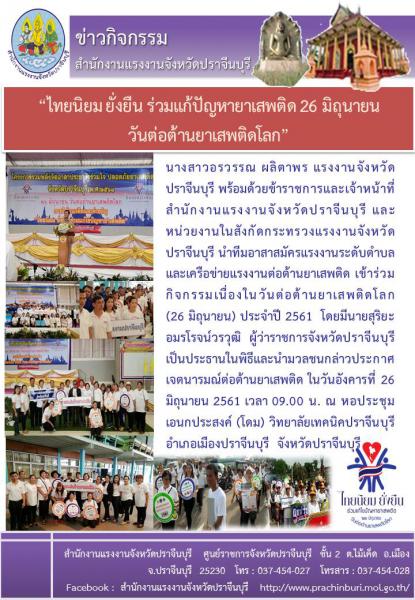 สรจ.ปราจีนบุรี ร่วมกิจกรรม ไทยนิยมยั่งยืน ร่วมต้านปัญหายาเสพติด 26 มิถุนายน วันต่อต้านยาเสพติดโลก