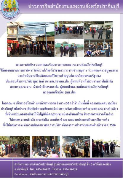 สรจ.ปราจีนบุรี ร่วมคณะตรวจบูรณาการการดำเนินงานป้องกันและแก้ไขการค้ามนุษย์ ตามนโยบายของรัฐบาล