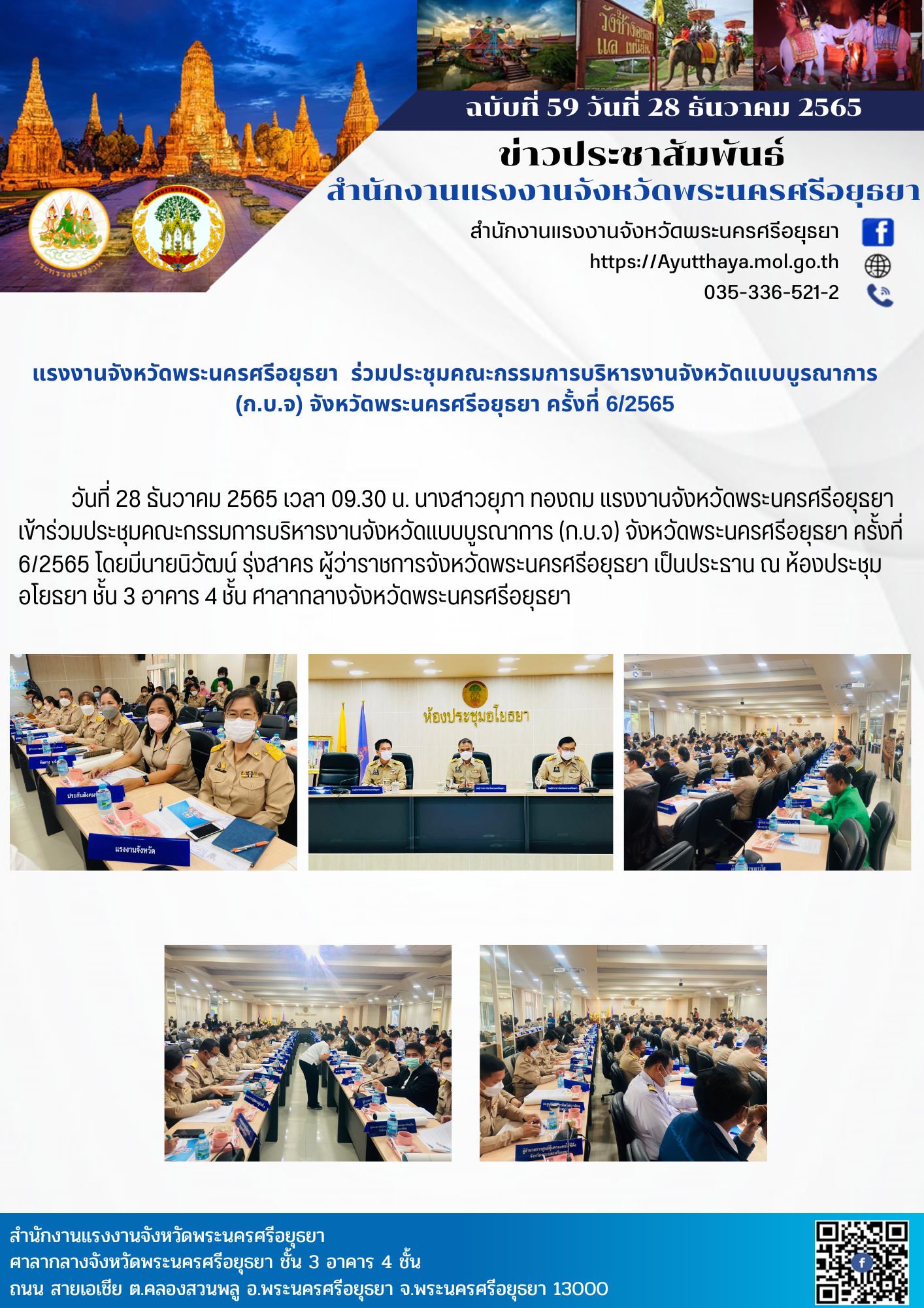 สรจ.พระนครศรีอยุธยา เข้าร่วมประชุมคณะกรรมการบริหารงานจังหวัดแบบบูรณาการ (ก.บ.จ) พระนครศรีอยุธยา ครั้งที่ 6/2565