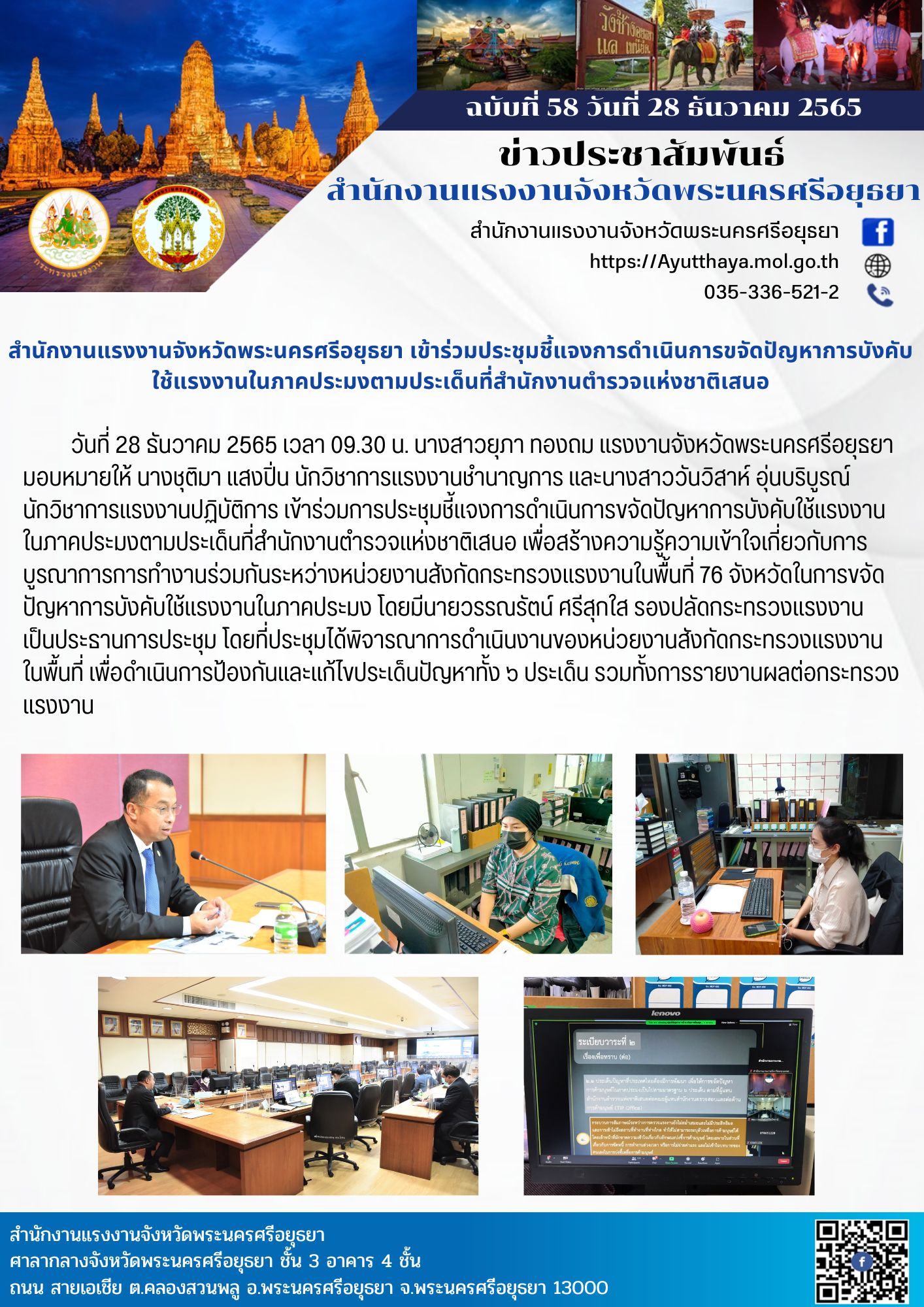 สรจ.พระนครศรีอยุธยา เข้าร่วมประชุมชี้แจงการดำเนินการขจัดปัญหาการบังคับใช้แรงงานในภาคประมง