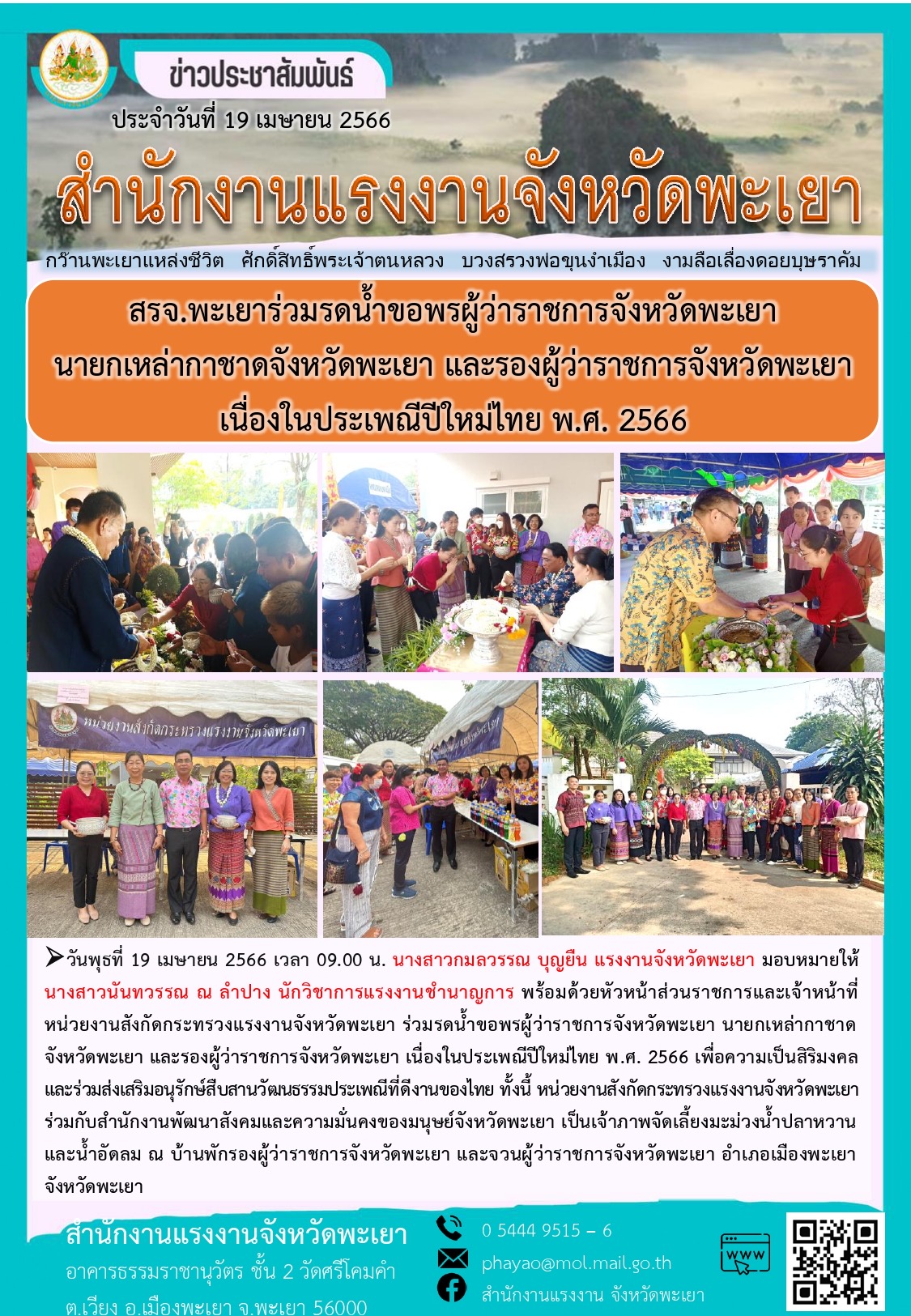 สรจ.พะเยา ร่วมรดน้ำขอพรผู้ว่าราชการจังหวัดพะเยา นายกเหล่ากาชาดจังหวัดพะเยา และรองผู้ว่าราชการจังหวัดพะเยา เนื่องในประเพณีปีใหม่ไทย พ.ศ. 2566
