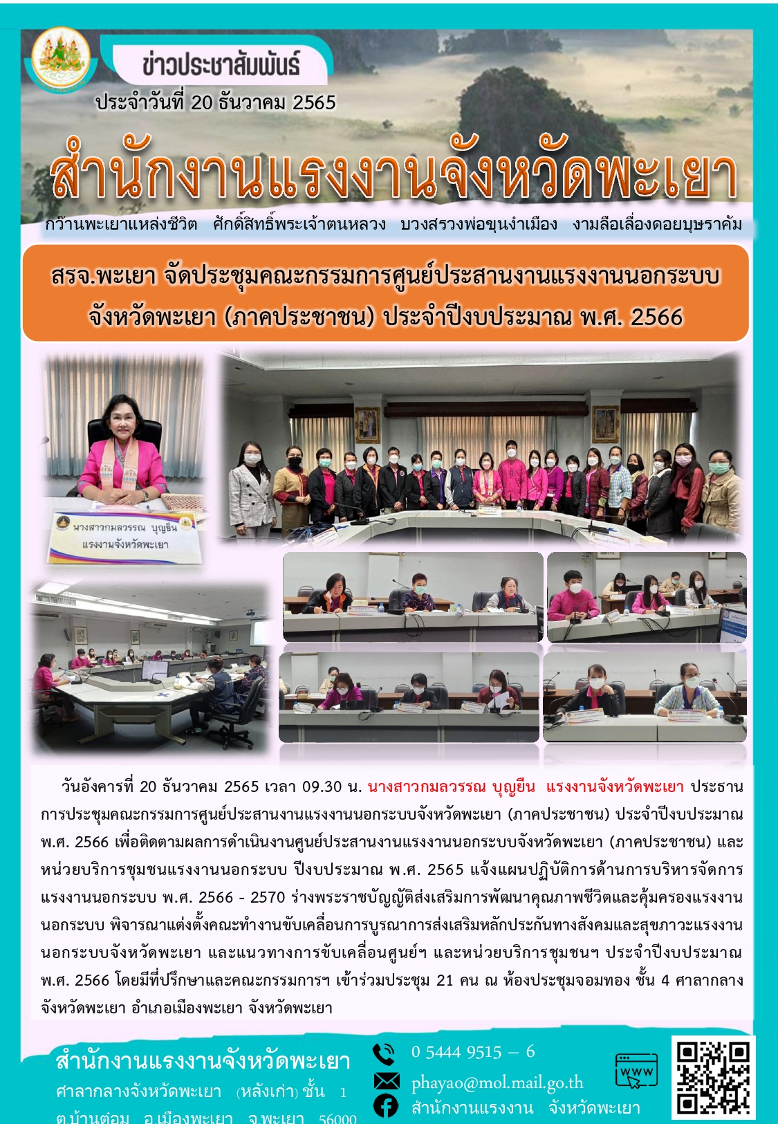 สรจ.พะเยา จัดประชุมคณะกรรมการศูนย์ประสานงานแรงงานนอกระบบจังหวัดพะเยา (ภาคประชาชน) ประจำปีงบประมาณ พ.ศ. 2566