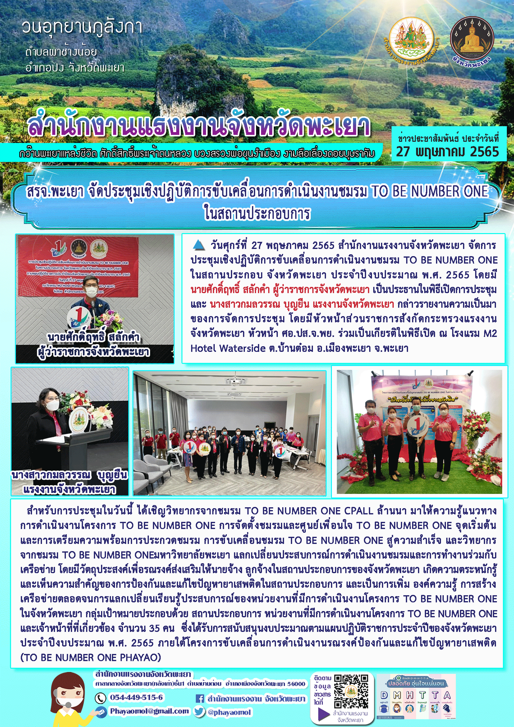 สรจ.พะเยา จัดประชุมเชิงปฏิบัติการขับเคลื่อนการดำเนินงานชมรม TO BE NUMBER ONE ในสถานประกอบการ