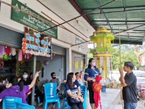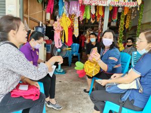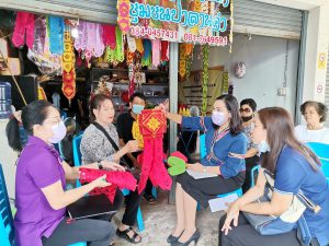 สำหรับการลงพื้นที่ในครั้งนี้ ได้พบกับกลุ่มผู้สูงอายุ กลุ่มผู้ว่างงาน ที่มีอายุระหว่าง อายุ 55 – 74 ปี ที่แจ้งความประสงค์ให้หน่วยงานในสังกัดกระทรวงแรงงานช่วยเหลือในด้านการต่อยอดด้านอาชีพ โดยต้องการฝึกการออกแบบลายผ้า ในการประดิษฐ์ ประทีป โคมไฟ และตุงนำโชค ให้มีความสวยงาม ตรงต่อความต้องการของตลาดให้มากยิ่งขึ้น
