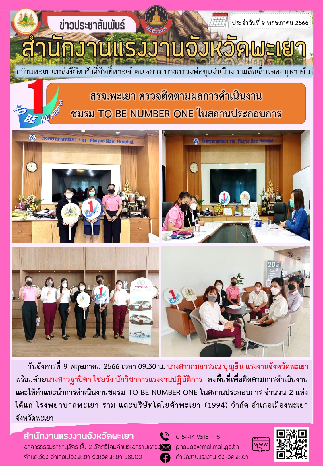 สรจ.พะเยา ตรวจติดตามผลการดำเนินงานชมรม TO BE NUMBER ONE ในสถานประกอบการ