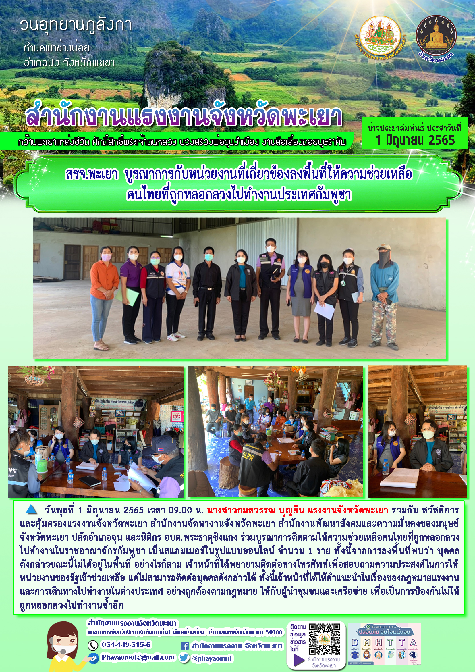 สรจ.พะเยา บูรณาการกับหน่วยงานที่เกี่ยวข้องลงพื้นที่ให้ความช่วยเหลือคนไทยที่ถูกหลอกลวงไปทำงานประเทศกัมพูชา