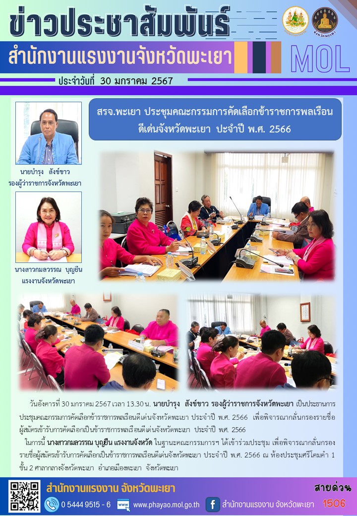 สรจ.พะเยา ประชุมคณะกรรมการคัดเลือกข้าราชการพลเรือนดีเด่นจังหวัดพะเยา ปะจำปี พ.ศ. 2566