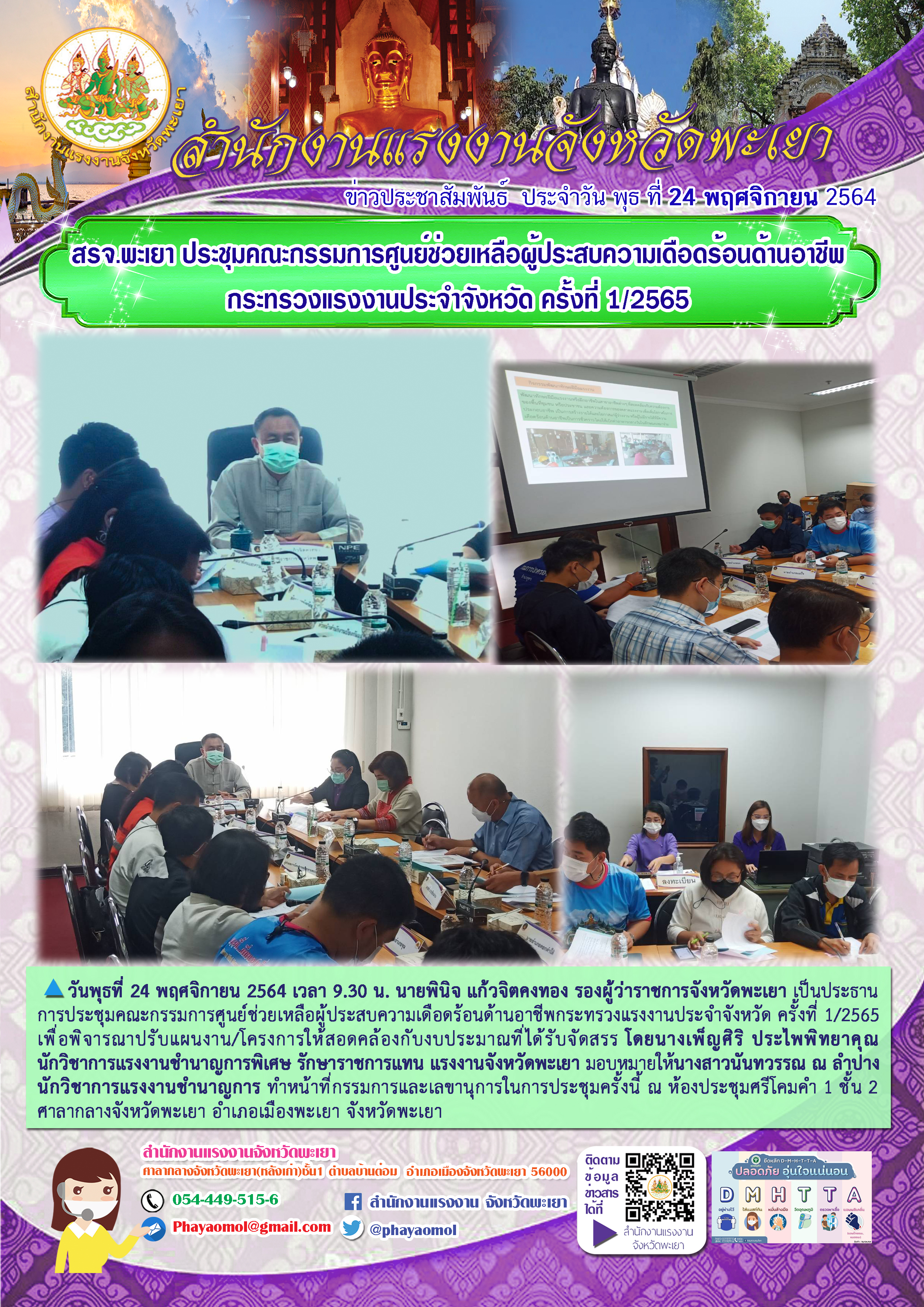 สรจ.พะเยา ประชุมคณะกรรมการศูนย์ช่วยเหลือผู้ประสบความเดือดร้อนด้านอาชีพกระทรวงแรงงานประจำจังหวัด ครั้งที่ 1/2565
