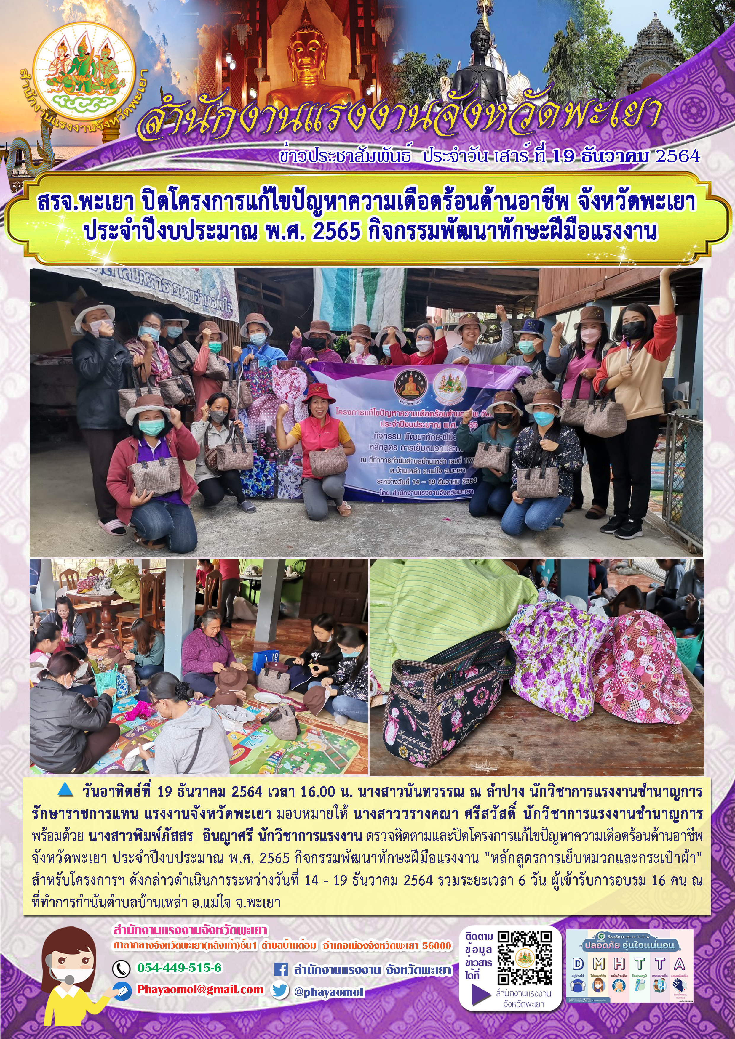 สรจ.พะเยา ปิดโครงการแก้ไขปัญหาความเดือดร้อนด้านอาชีพ จังหวัดพะเยา ประจำปีงบประมาณ พ.ศ. 2565 กิจกรรมพัฒนาทักษะฝีมือแรงงาน