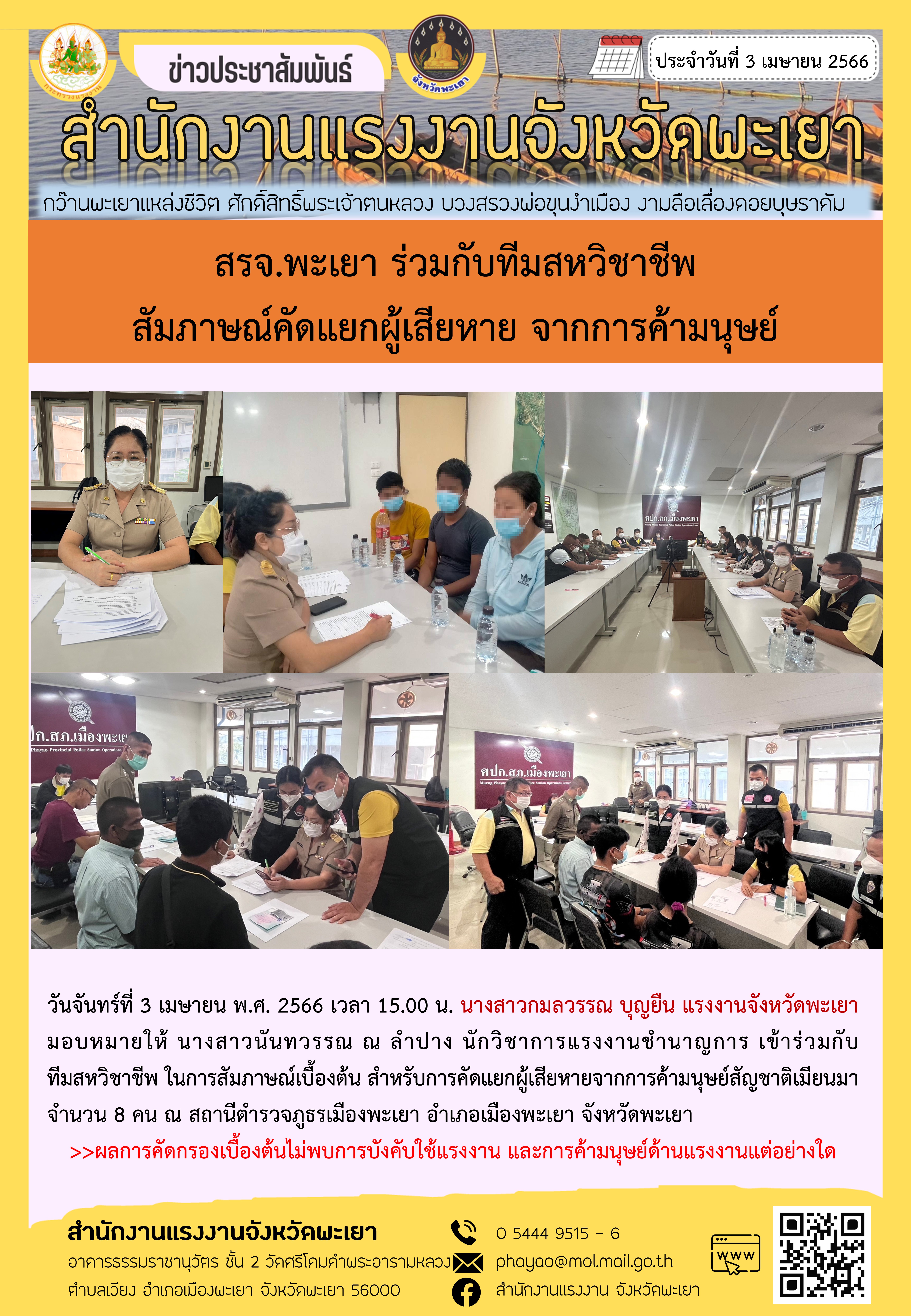 สรจ.พะเยา ร่วมกับทีมสหวิชาชีพ สัมภาษณ์คัดแยกผู้เสียหาย จากการค้ามนุษย์