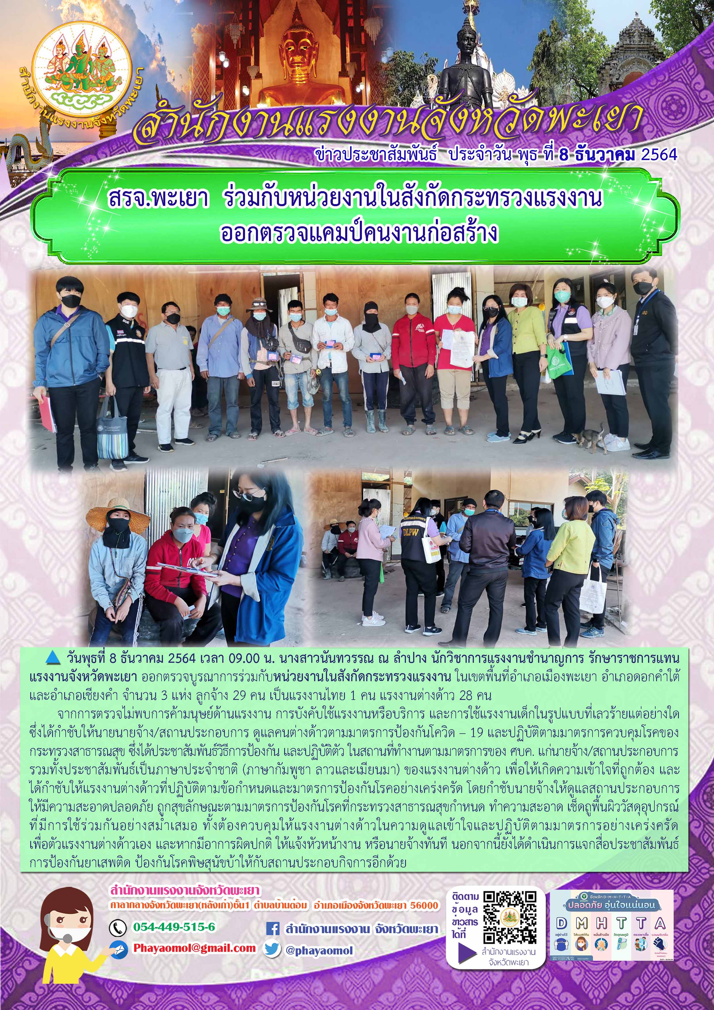 สรจ.พะเยา ร่วมกับหน่วยงานในสังกัดกระทรวงแรงงาน ออกตรวจแคมป์คนงานก่อสร้าง