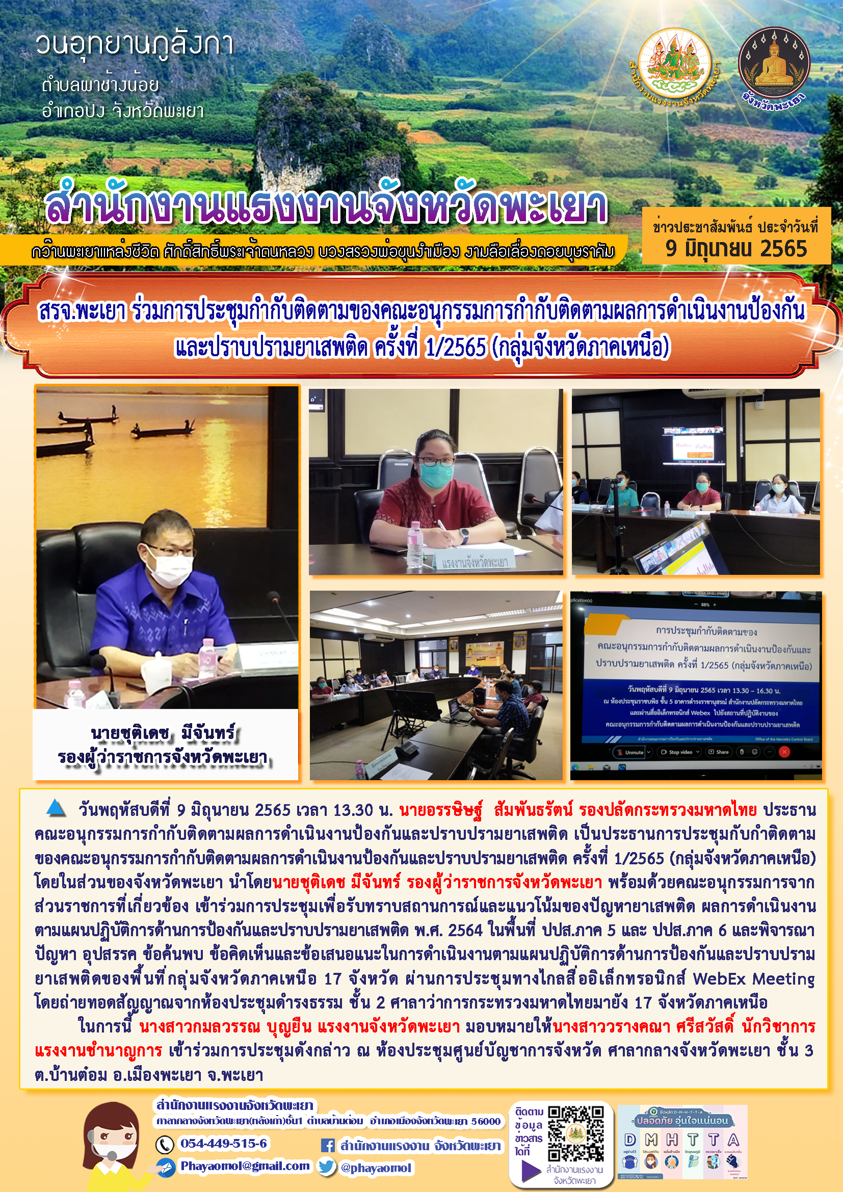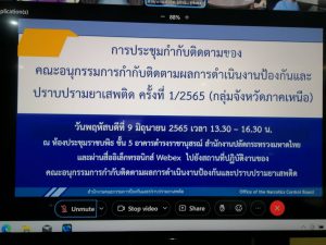 สรจ.พะเยา ร่วมการประชุมกำกับติดตามของคณะอนุกรรมการกำกับติดตามผลการดำเนินงานป้องกันและปราบปรามยาเสพติด ครั้งที่ 1/2565 (กลุ่มจังหวัดภาคเหนือ)