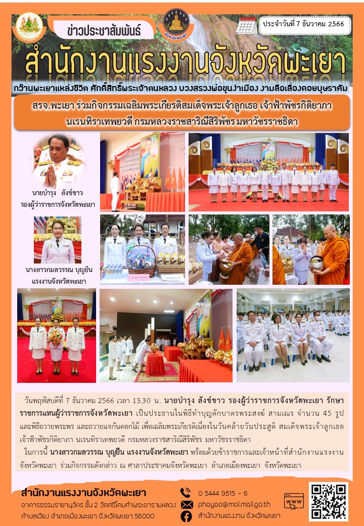 สรจ.พะเยา ร่วมกิจกรรมเฉลิมพระเกียรติสมเด็จพระเจ้าลูกเธอ เจ้าฟ้าพัชรกิติยาภา นเรนทิราเทพยวดี กรมหลวงราชสาริณีสิริพัชร มหาวัชรราชธิดา