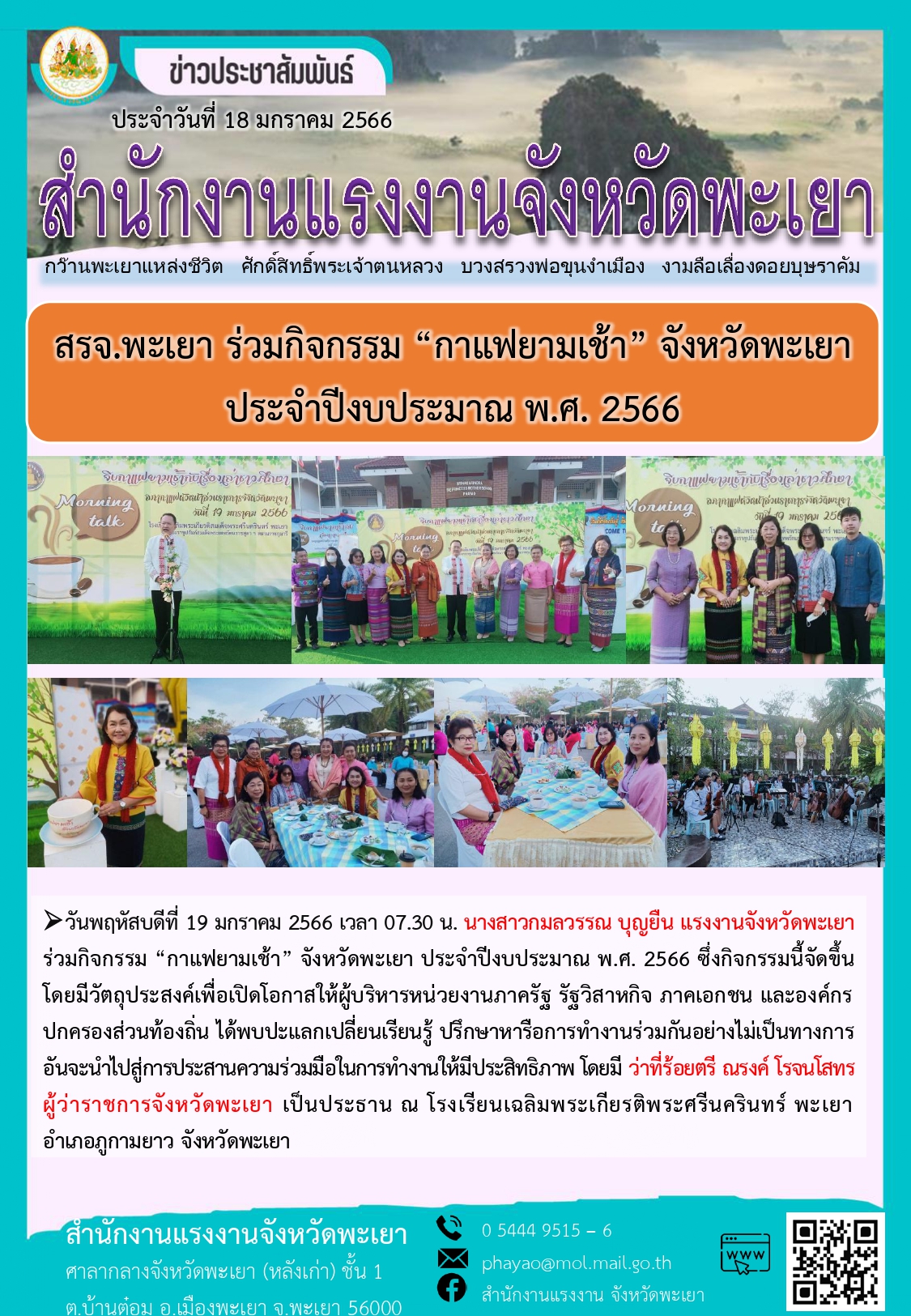 สรจ.พะเยา ร่วมกิจกรรม “กาแฟยามเช้า” จังหวัดพะเยา ประจำปีงบประมาณ พ.ศ. 2566