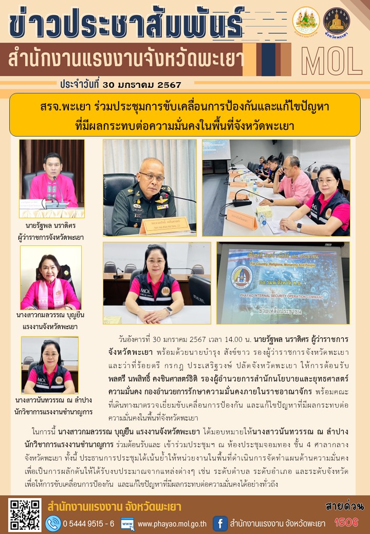 สรจ.พะเยา ร่วมประชุมการขับเคลื่อนการป้องกันและแก้ไขปัญหาที่มีผลกระทบต่อความมั่นคงในพื้นที่จังหวัดพะเยา