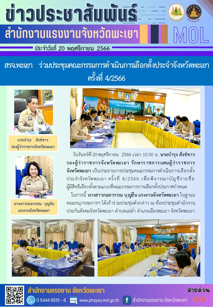 สรจ.พะเยา ร่วมประชุมคณะกรรมการดำเนินการเลือกตั้งประจำจังหวัดพะเยา ครั้งที่ 4/2566