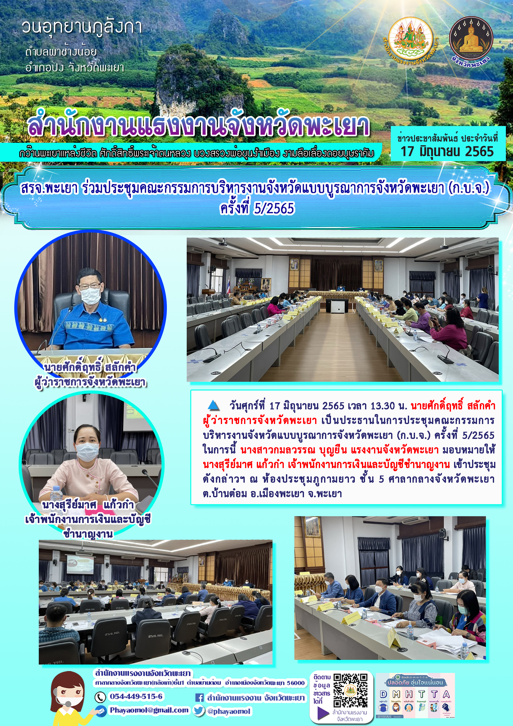 สรจ.พะเยา ร่วมประชุมคณะกรรมการบริหารงานจังหวัดแบบบูรณาการจังหวัดพะเยา (ก.บ.จ.) ครั้งที่ 5/2565