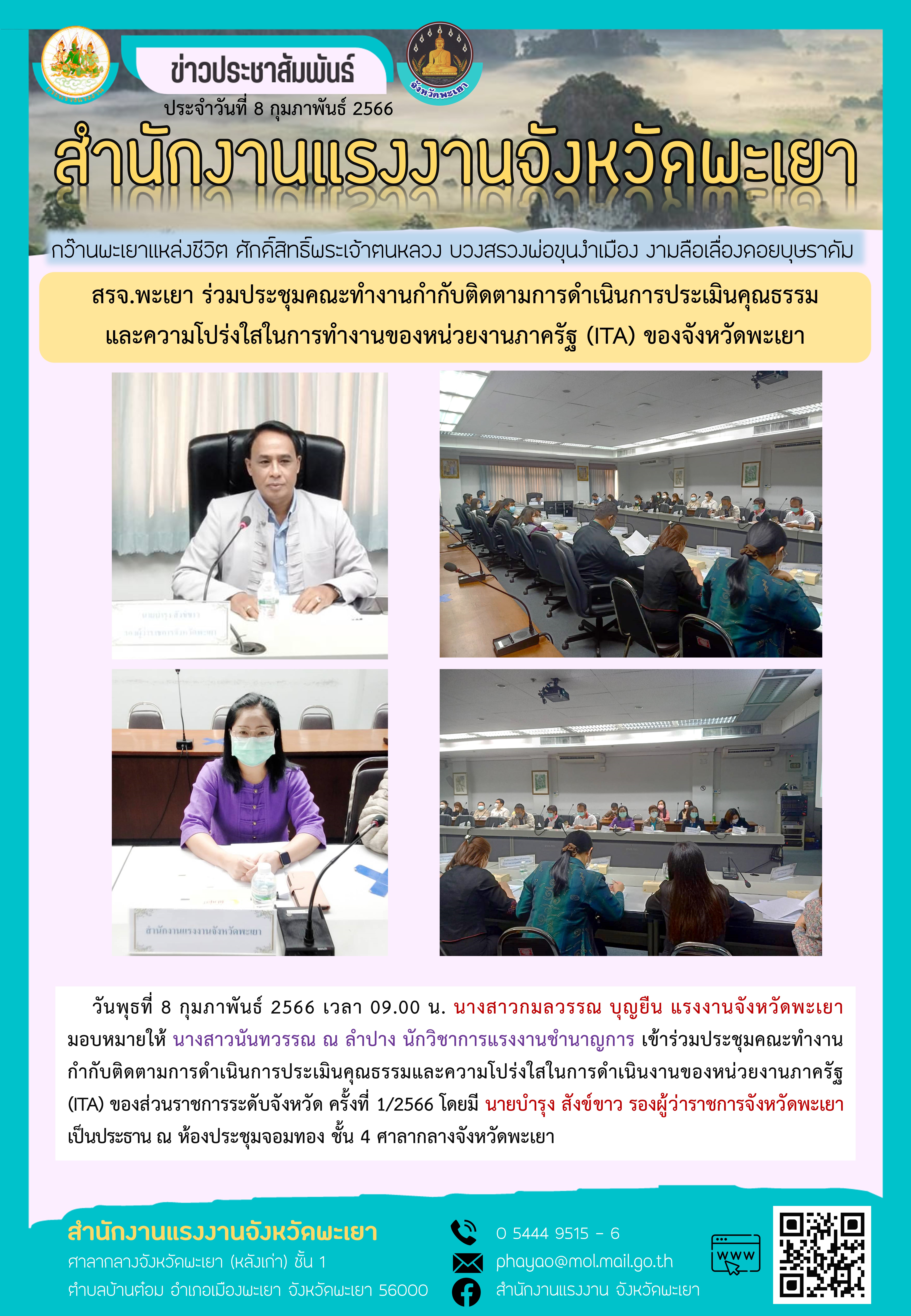 สรจ.พะเยา ร่วมประชุมคณะทำงานกำกับติดตามการดำเนินการประเมินคุณธรรมและความโปร่งใสในการทำงานของหน่วยงานภาครัฐ (ITA) ของจังหวัดพะเยา