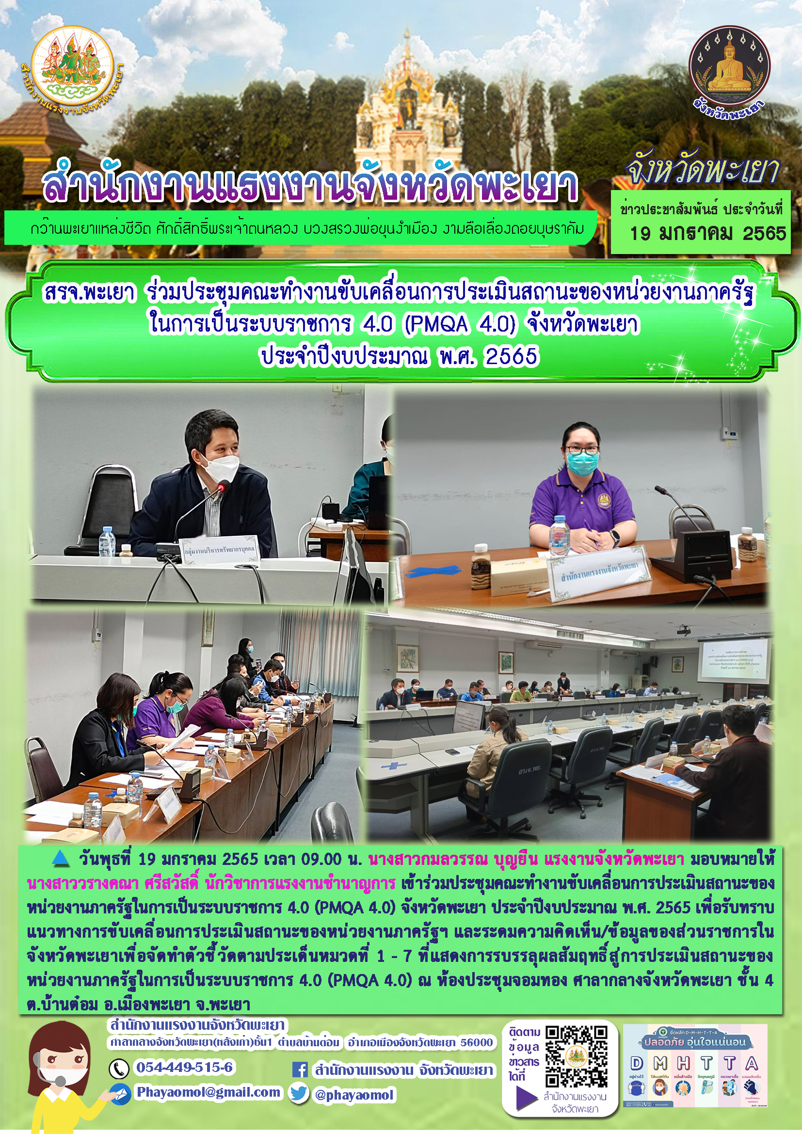 “สรจ.พะเยา ร่วมประชุมคณะทำงานขับเคลื่อนการประเมินสถานะของหน่วยงานภาครัฐในการเป็นระบบราชการ 4.0 (PMQA 4.0) จังหวัดพะเยา ประจำปีงบประมาณ พ.ศ. 2565”