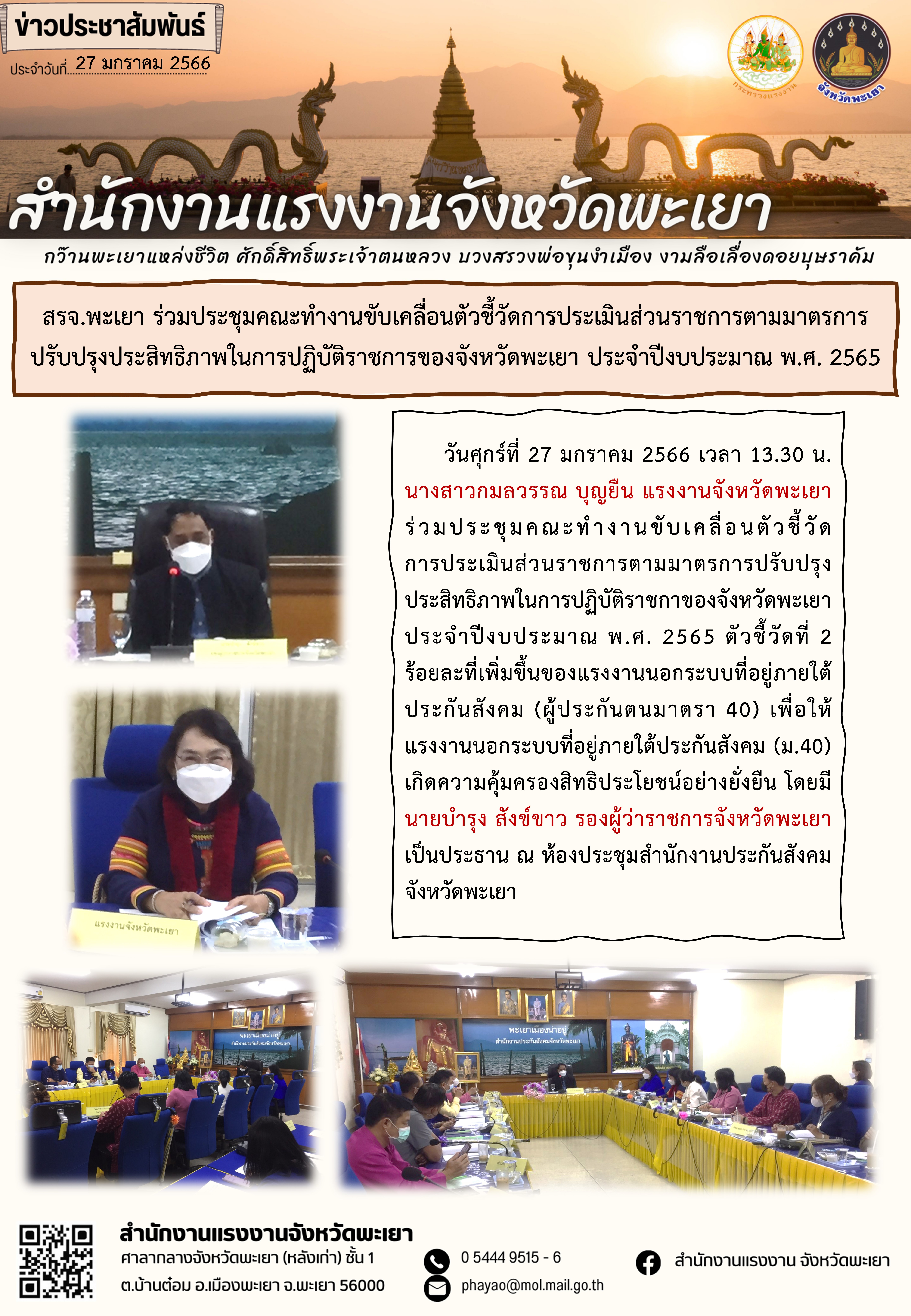 สรจ.พะเยา ร่วมประชุมคณะทำงานขับเคลื่อนตัวชี้วัดการประเมินส่วนราชการตามมาตรการปรับปรุงประสิทธิภาพในการปฏิบัติราชการของจังหวัดพะเยา ประจำปีงบประมาณ พ.ศ. 2565