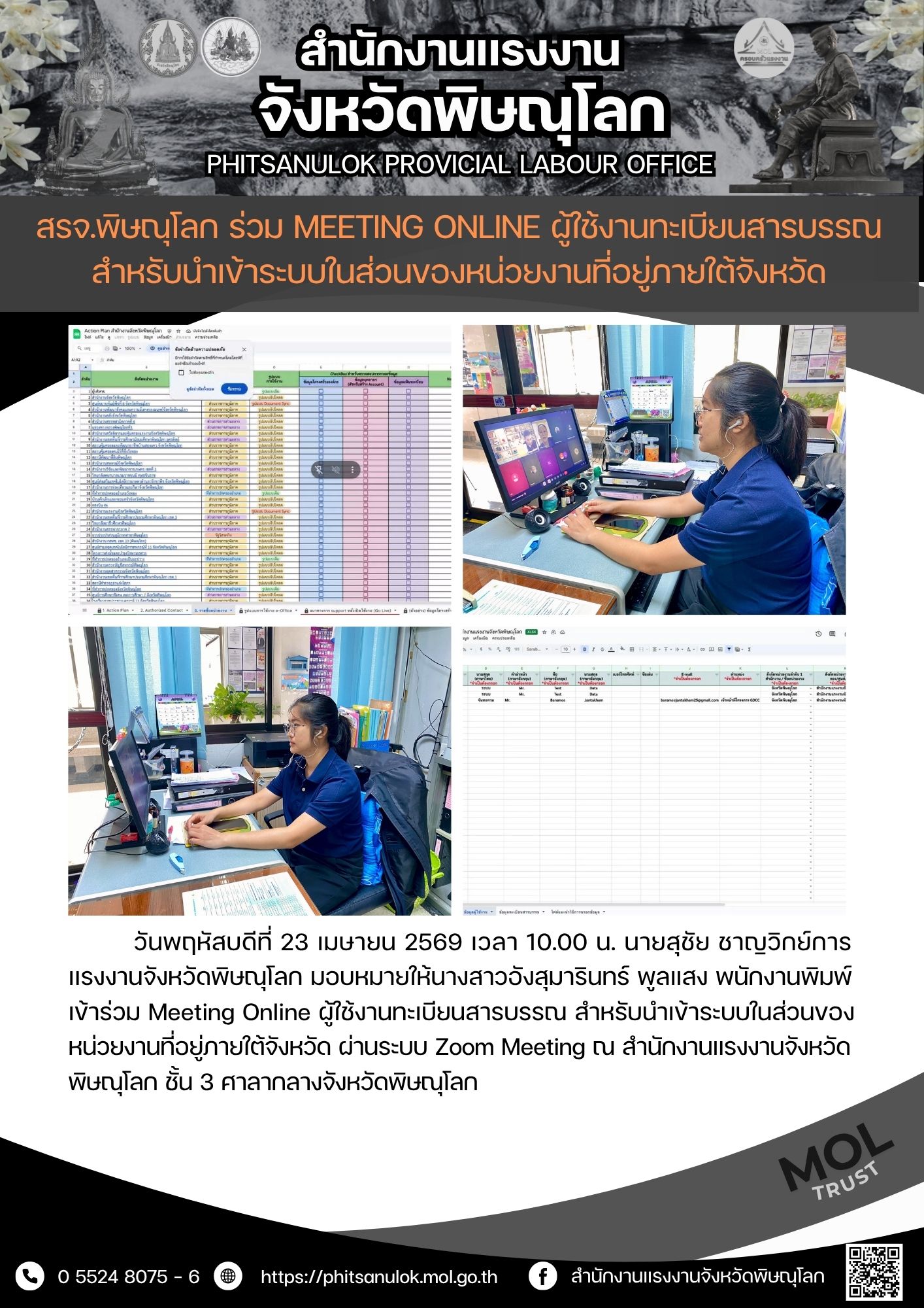 สรจ.พิษณุโลก ร่วม Meeting online ผู้ใช้งานทะเบียนสารบรรณ สำหรับนำเข้าระบบในส่วนของหน่วยงานที่อยู่ภายใต้จังหวัด
