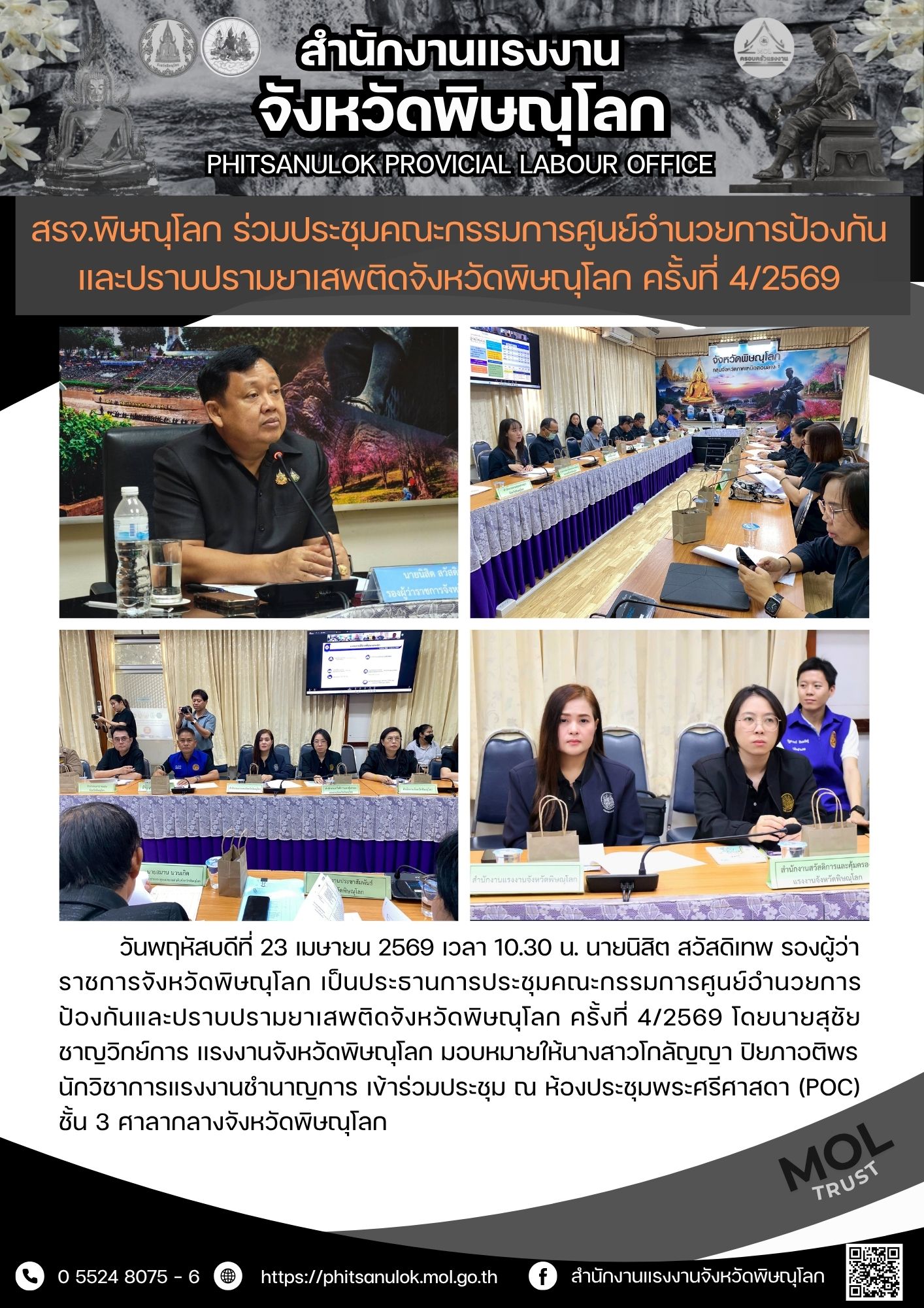 สรจ.พิษณุโลก ร่วมประชุมคณะกรรมการศูนย์อำนวยการป้องกันและปราบปรามยาเสพติดจังหวัดพิษณุโลก ครั้งที่ 4/2569